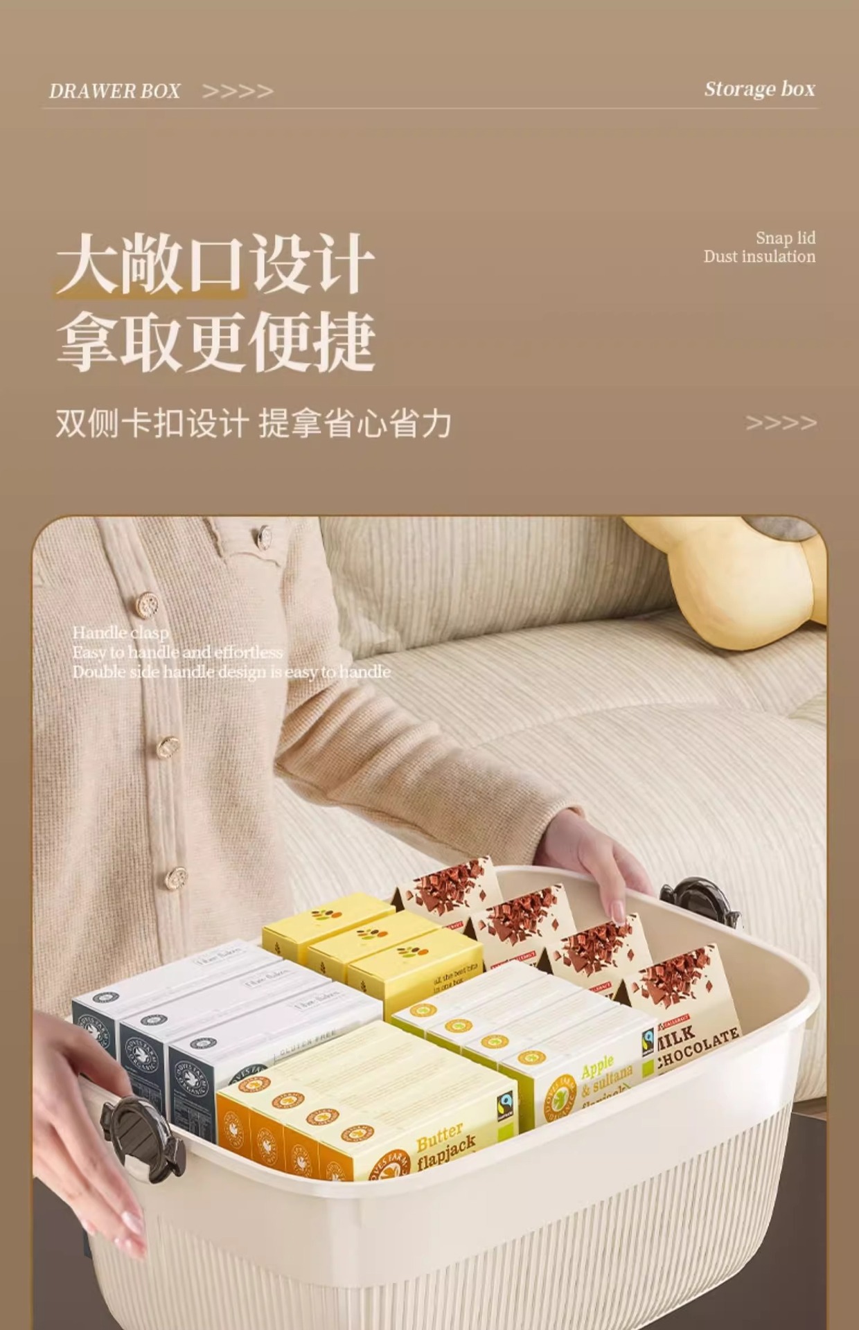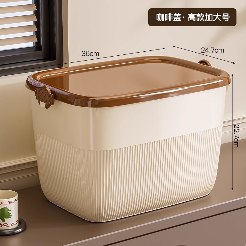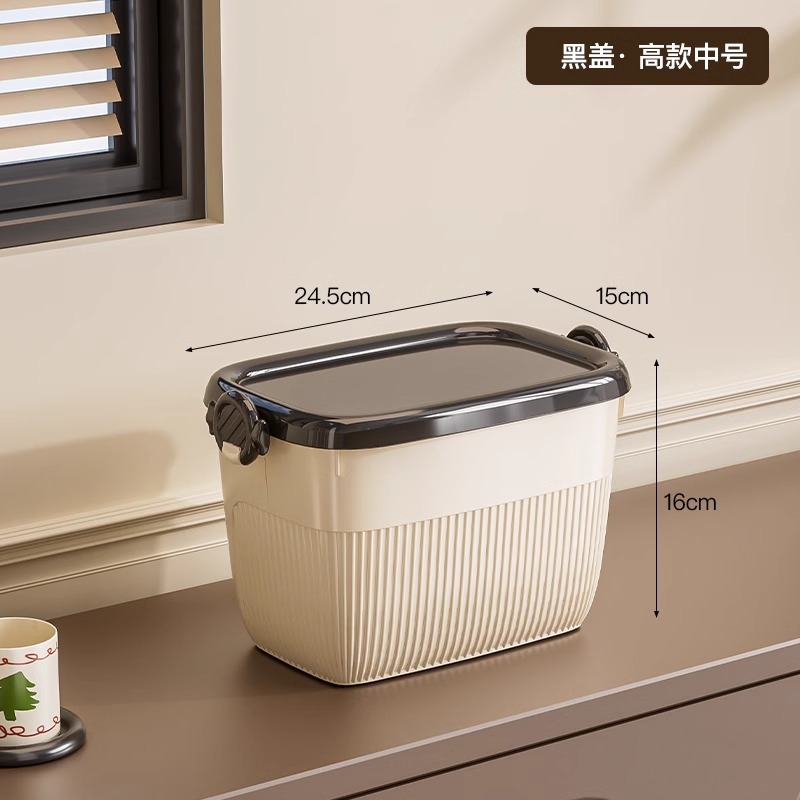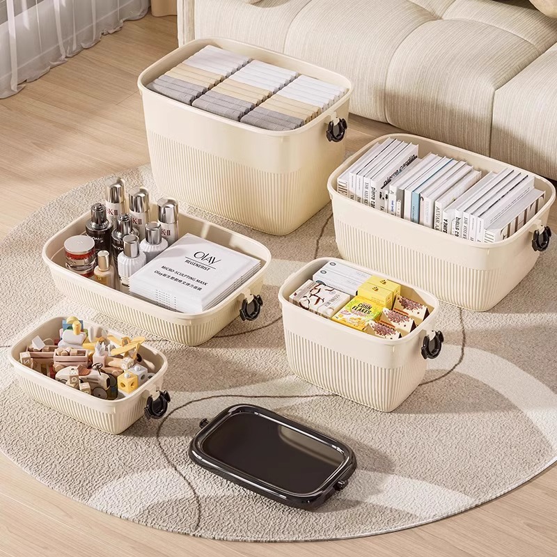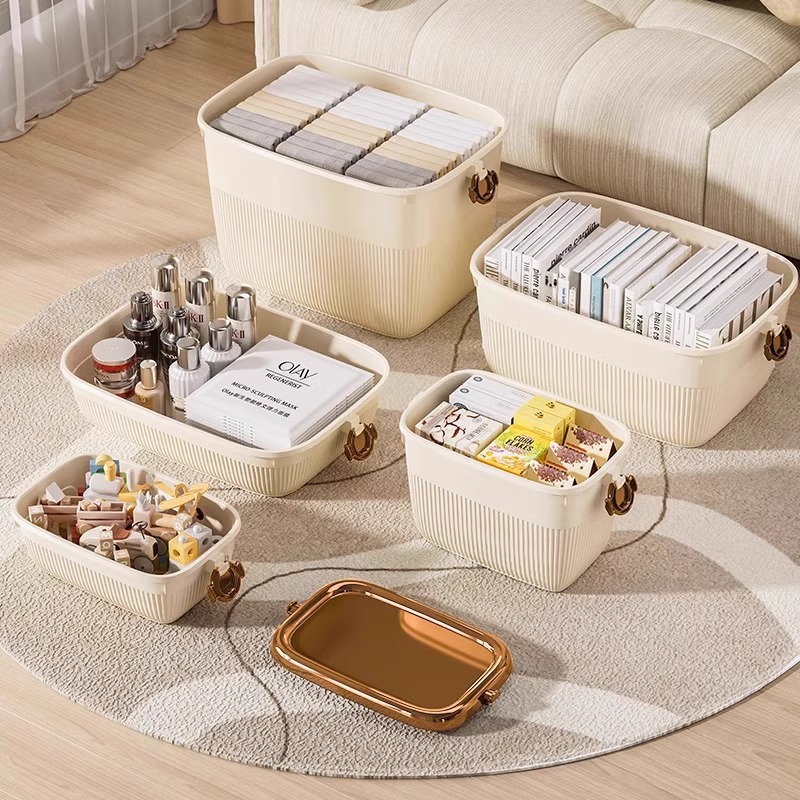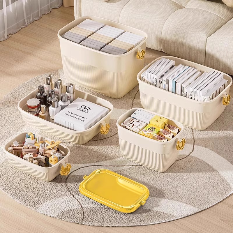 데스크탑 수납함 크림색 두꺼운 뚜껑 포함 대용량 간식 장난감 잡화 정리함 책상 수납함스토어 가기