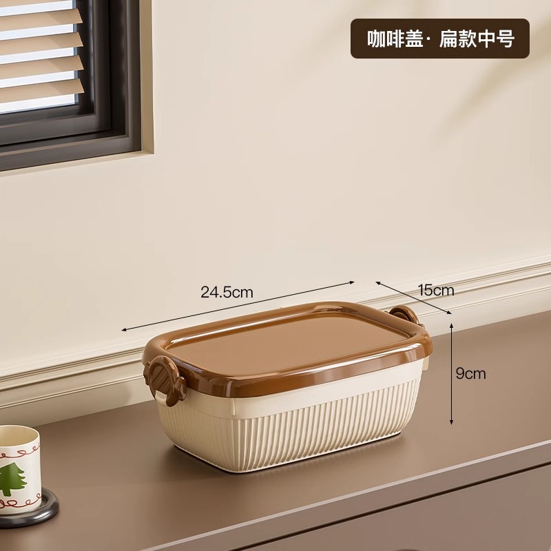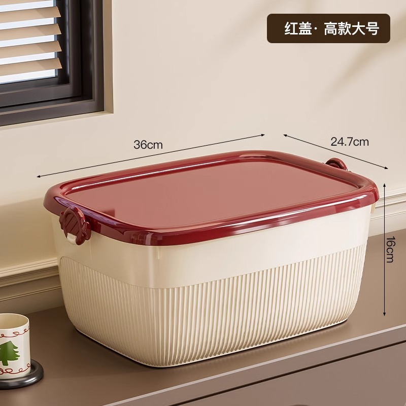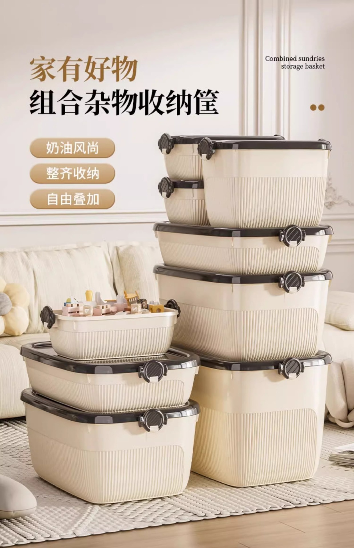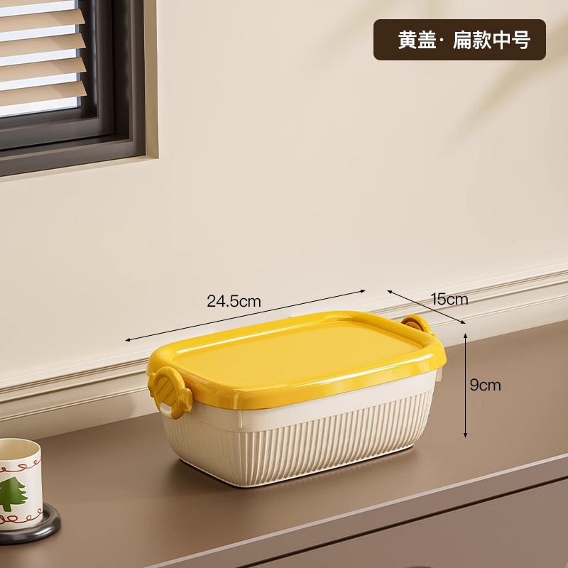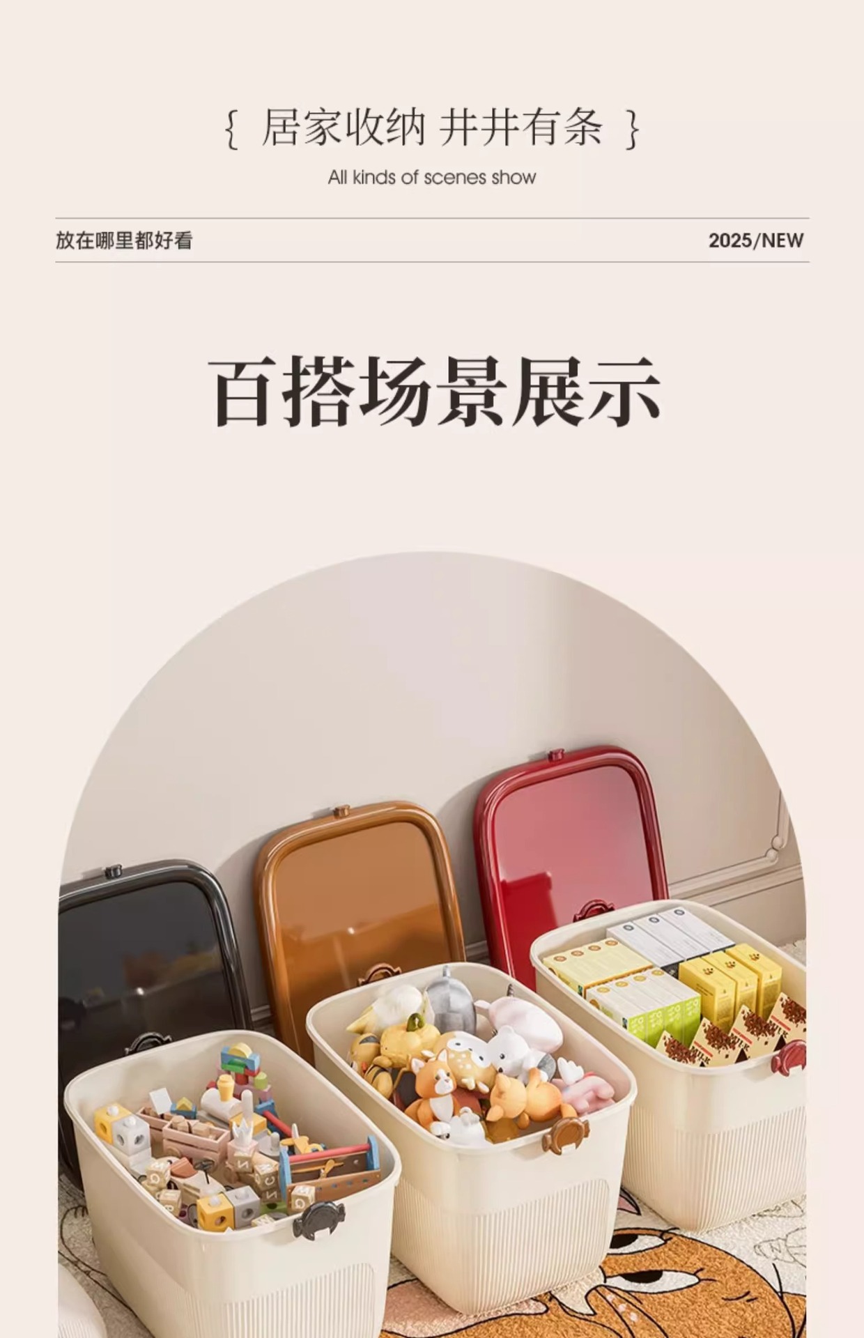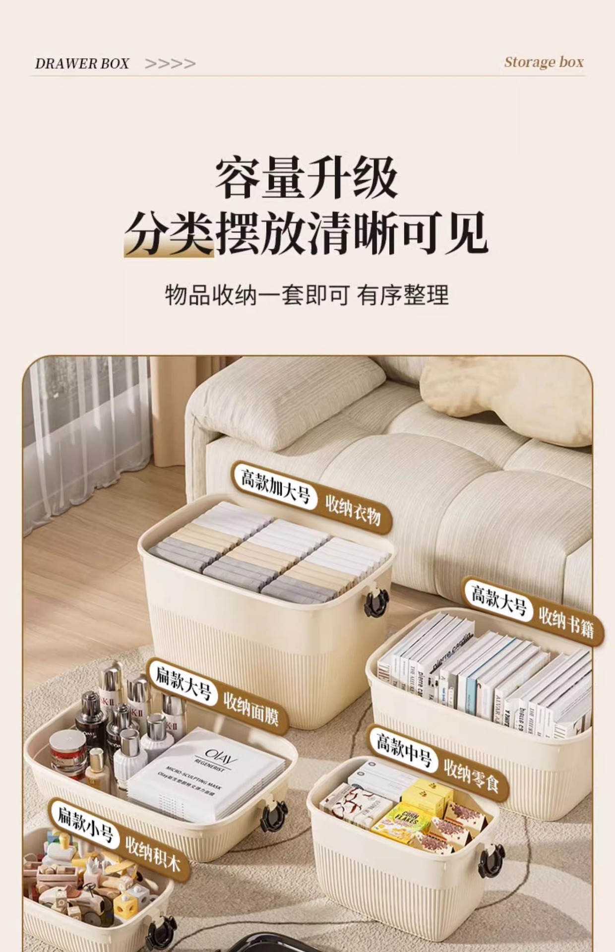 데스크탑 수납함 크림색 두꺼운 뚜껑 포함 대용량 간식 장난감 잡화 정리함 책상 수납함스토어 가기