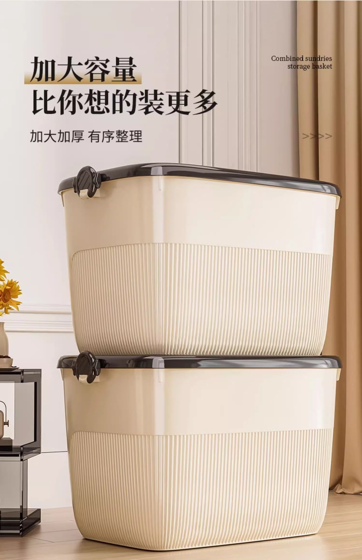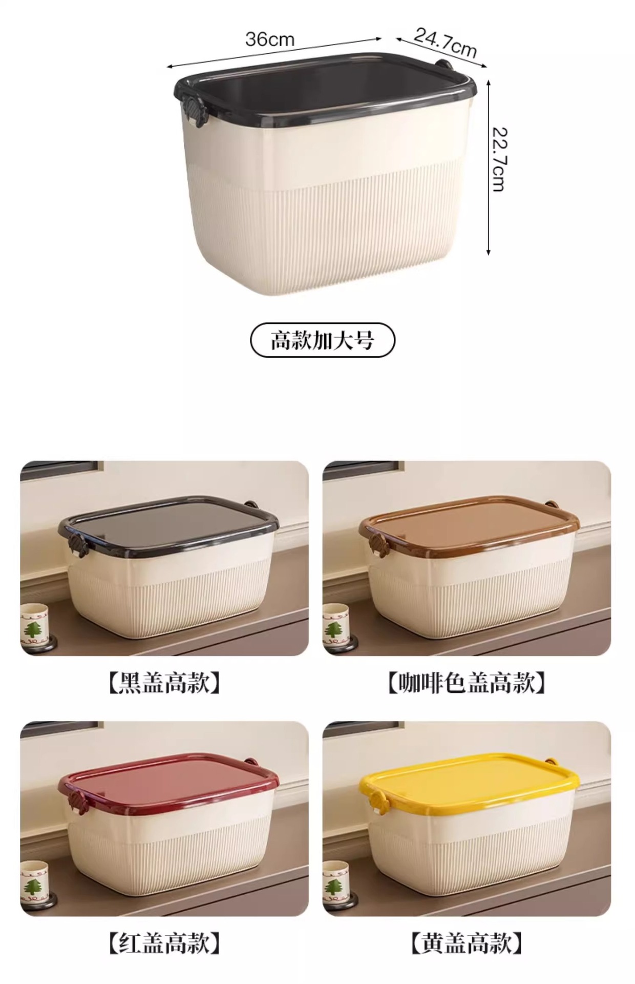 데스크탑 수납함 크림색 두꺼운 뚜껑 포함 대용량 간식 장난감 잡화 정리함 책상 수납함