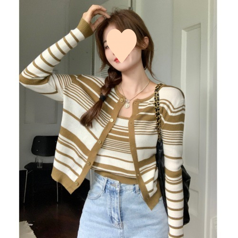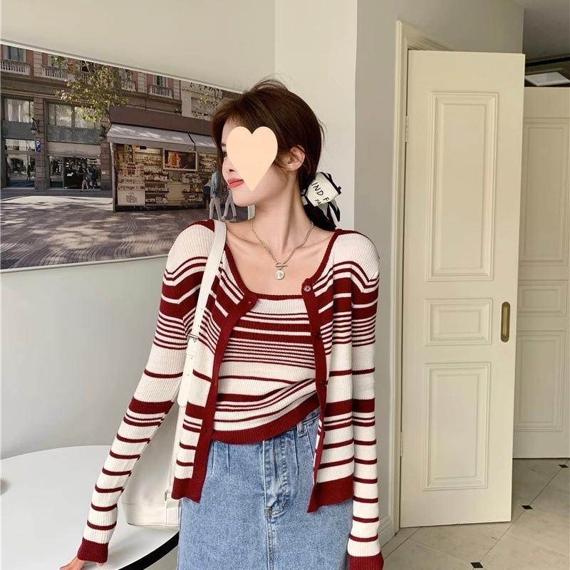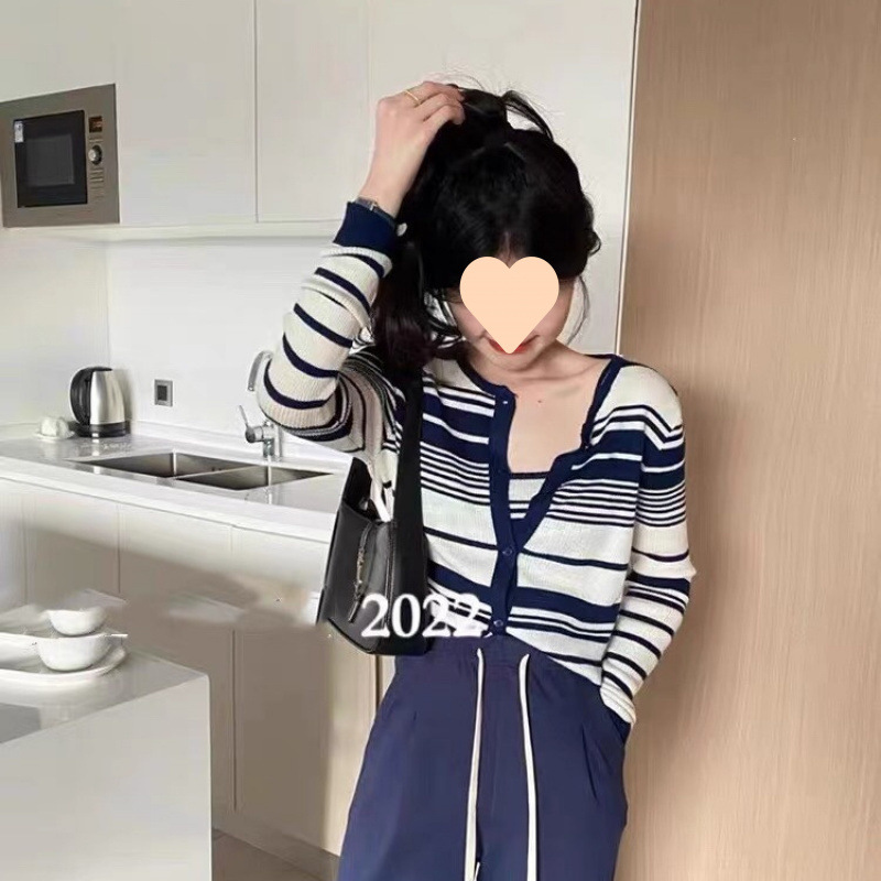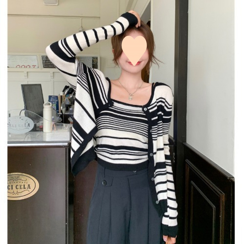 디자인 감각 틈새 짧은 슬링 니트 카디건 2 피스 탑 스트라이프 얇은 스웨터 코트 여성의 이른 봄스토어 가기