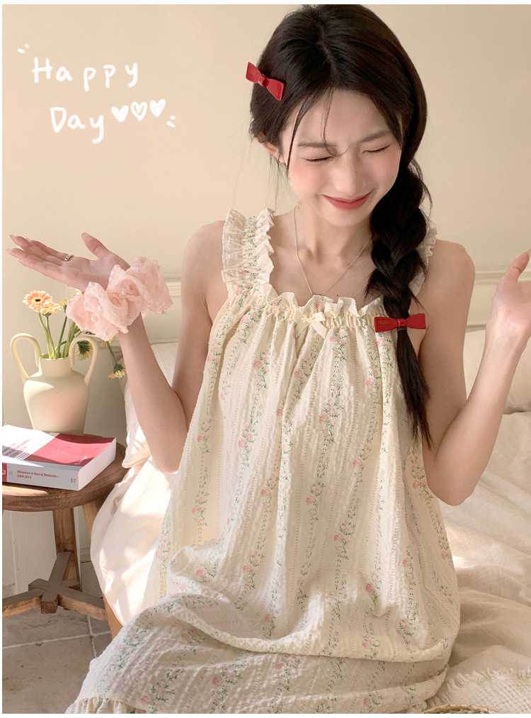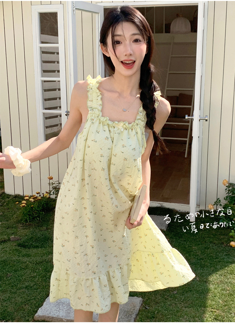 Wennie oni 슬링 Nightdress 여성용 달콤한 공주 스타일 벨트 가슴 패드 원피스 Nightwear 민소매 레이스 슬링 스커트