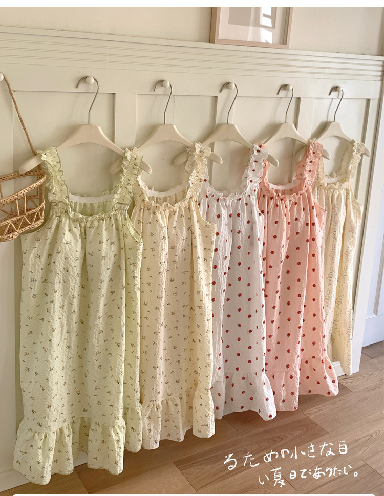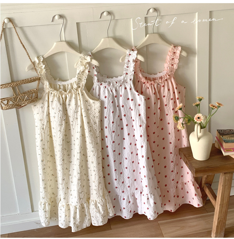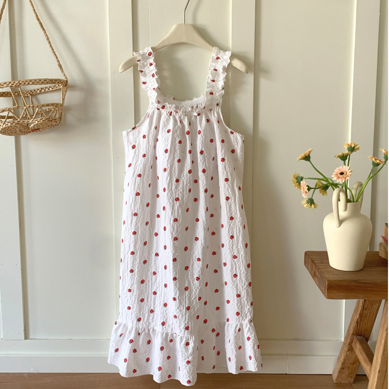 • T636 가슴 패드가 달린 잠옷 흰색 딸기