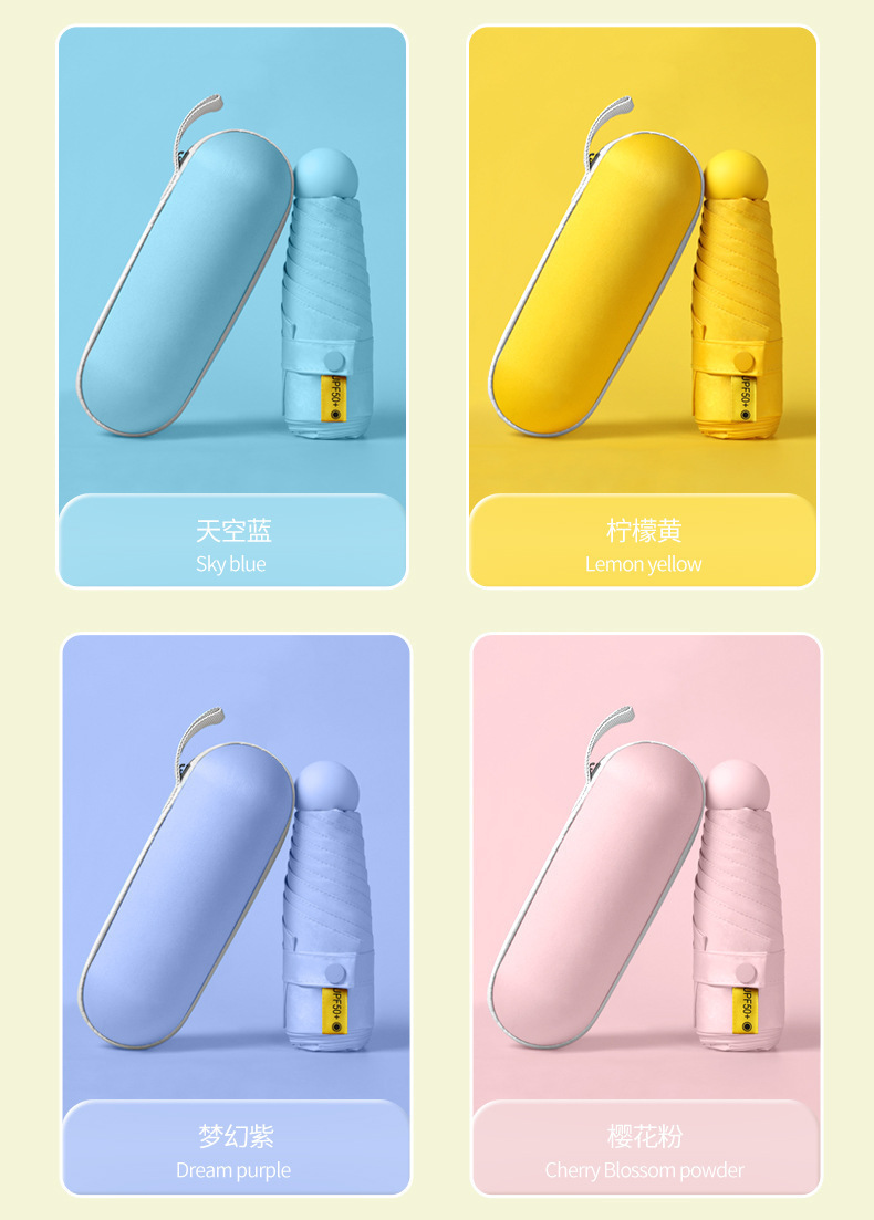 창조적 인 5 배 우산 울트라 라이트 캡슐 우산 안티 자외선 우산 여성의 검은 고무 우산 선 스크린 태양 우산 도매
