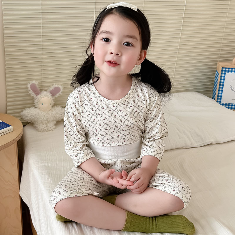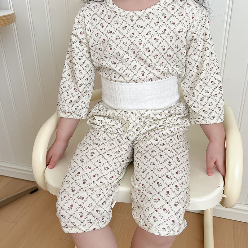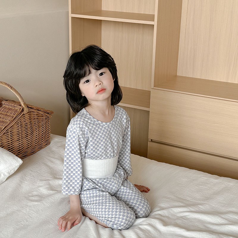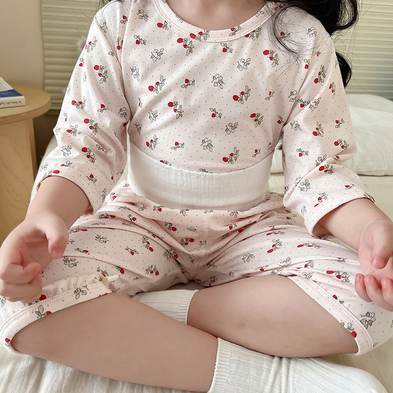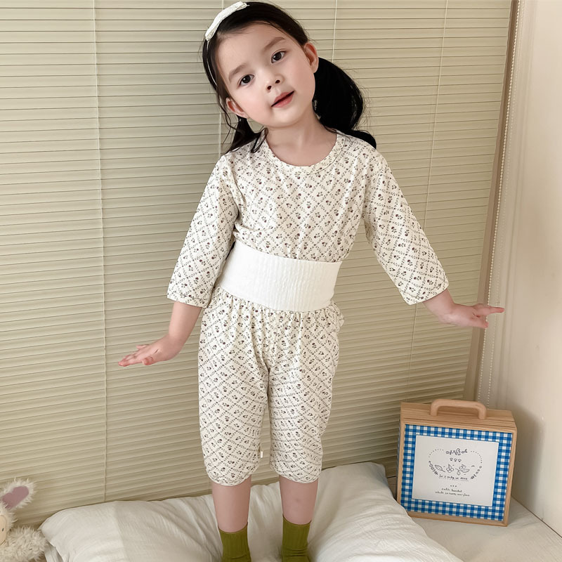 여름 아기 집 옷 소년의 높은 허리 배꼽 보호 잠옷 어린이 얇은 안티 냉각 에어컨 옷 7 포인트 세트