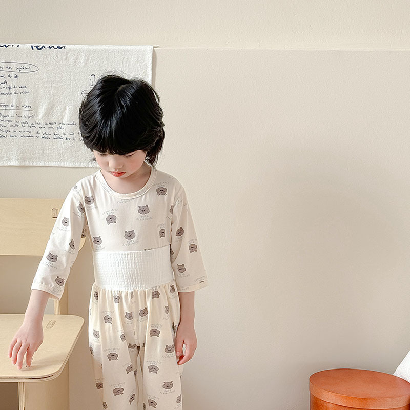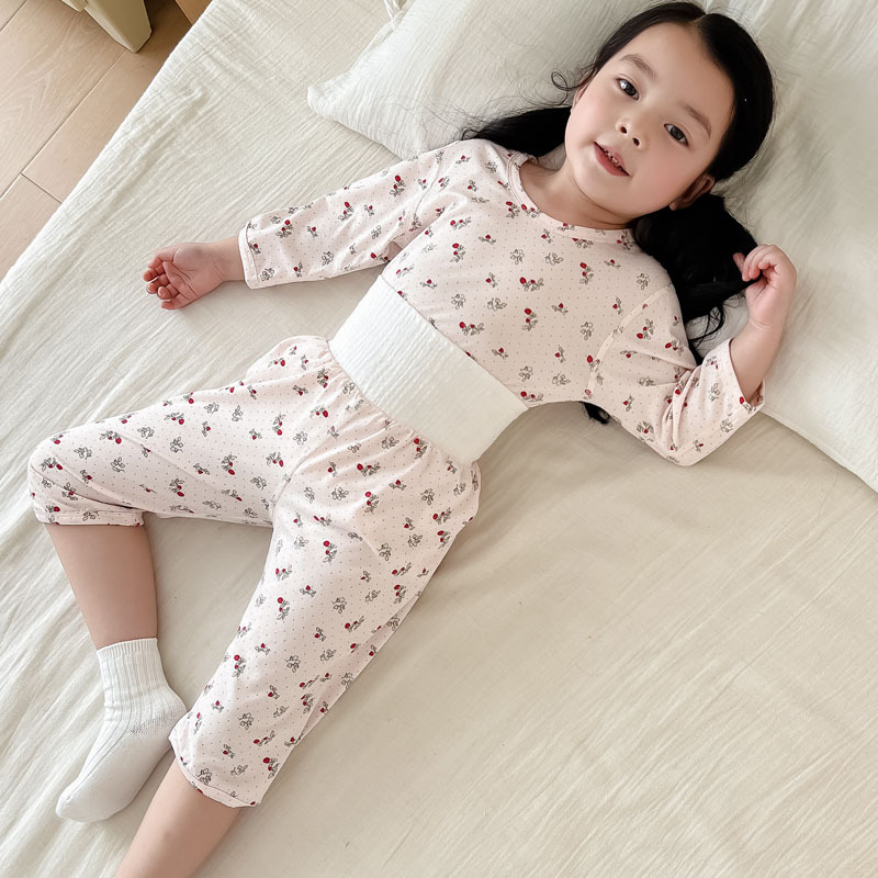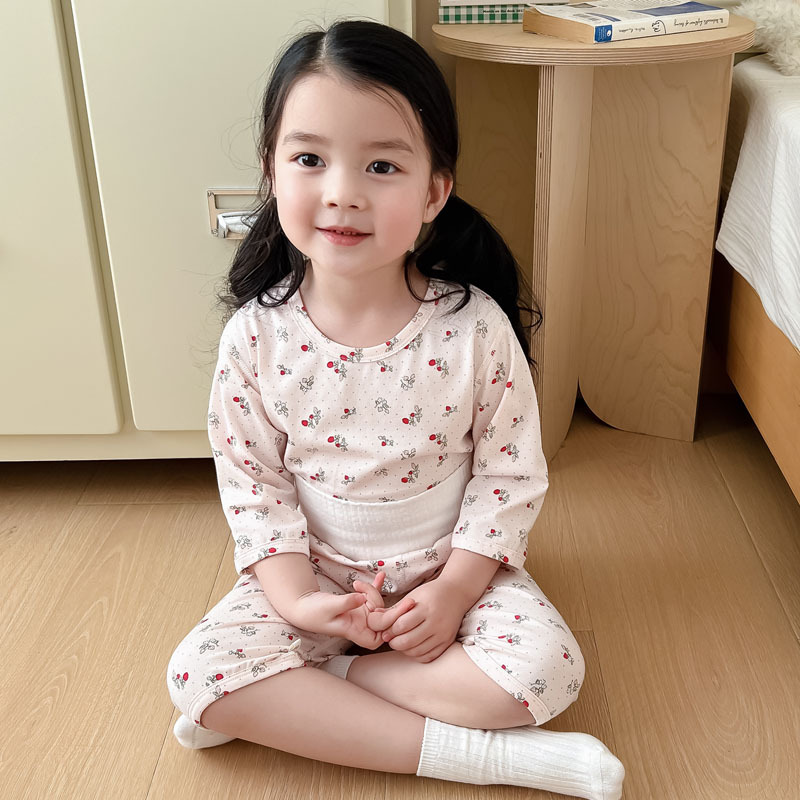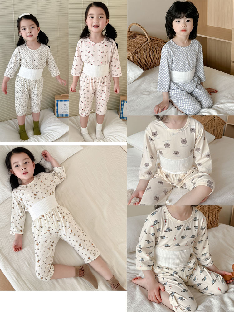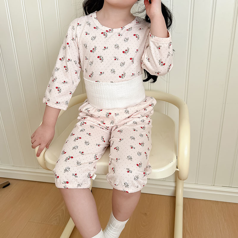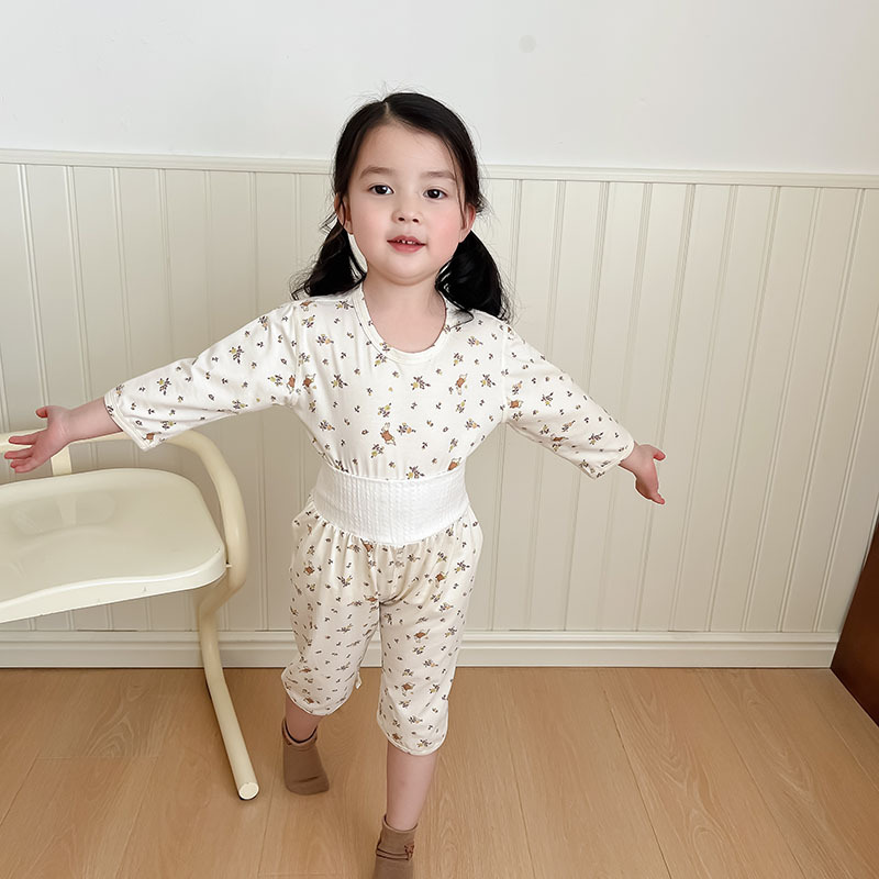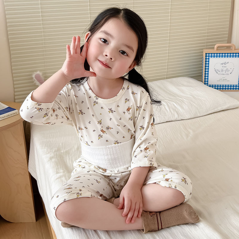 여름 아기 집 옷 소년의 높은 허리 배꼽 보호 잠옷 어린이 얇은 안티 냉각 에어컨 옷 7 포인트 세트스토어 가기