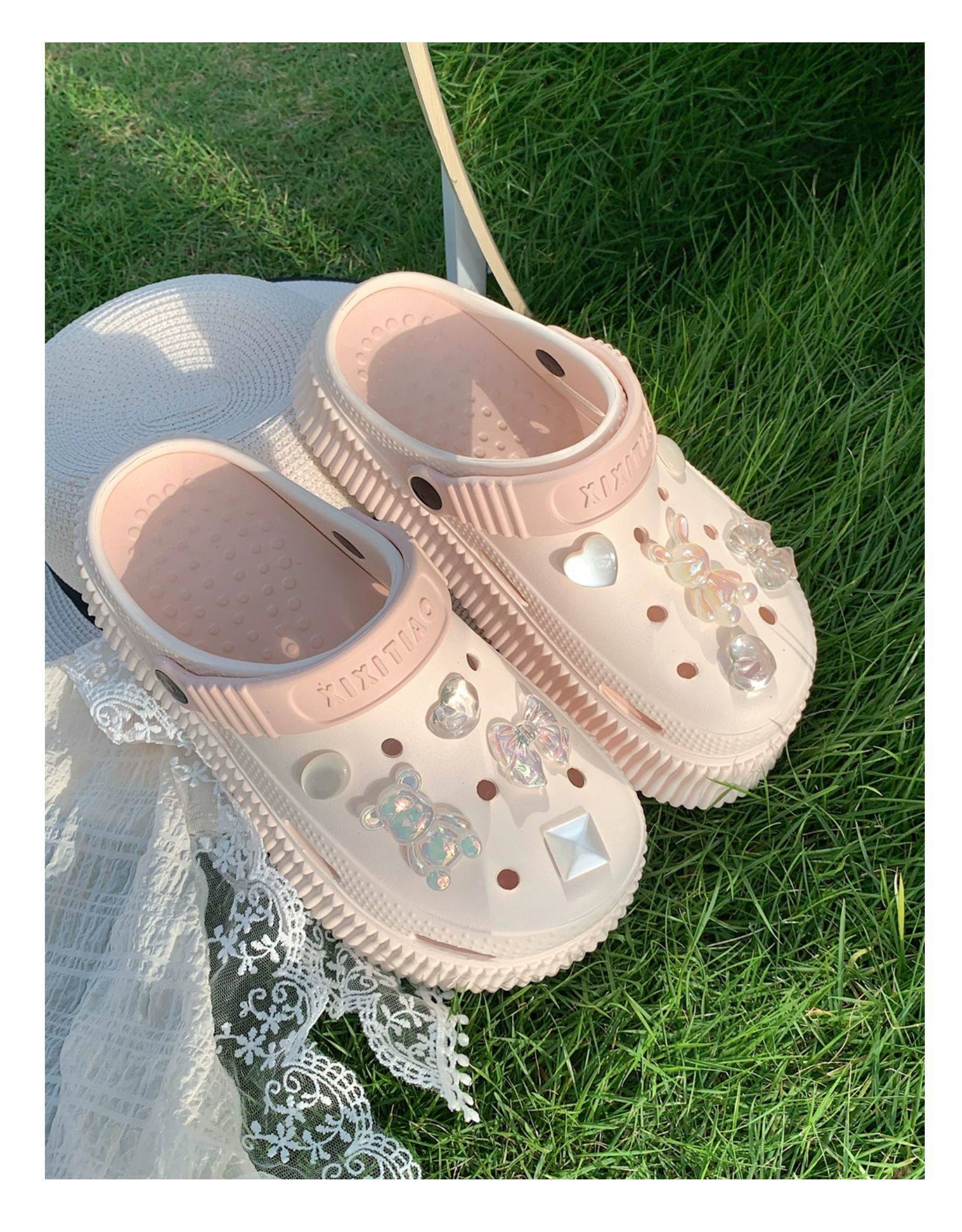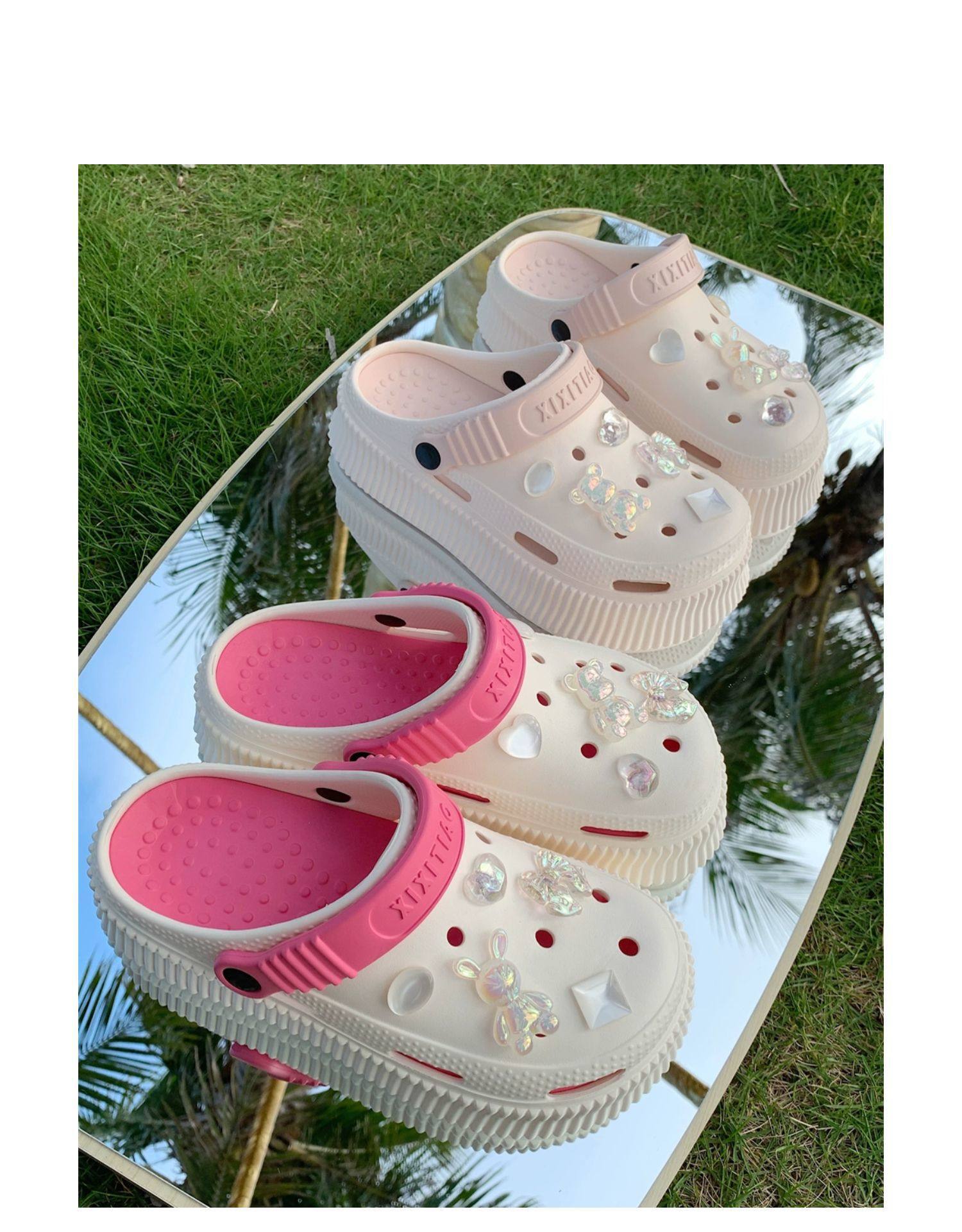 귀여운 곰돌이 모양의 PVC 소재의 달콤하고 창의적인 여성용 여름 야외 휴가용 비치 슈즈스토어 가기