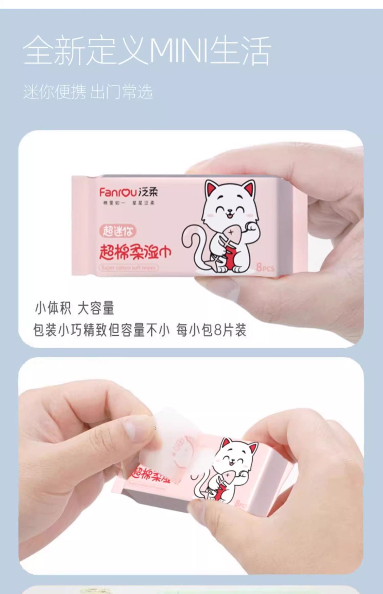 휴대용 미니 물티슈 작은 팩 유아 손과 입 어린이 휴대용 청소 물티슈 미니 아기 물티슈 도매스토어 가기