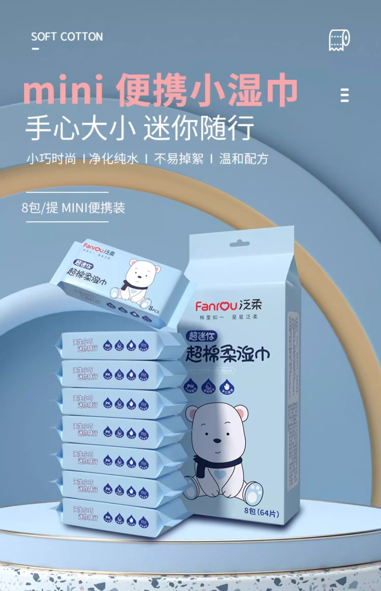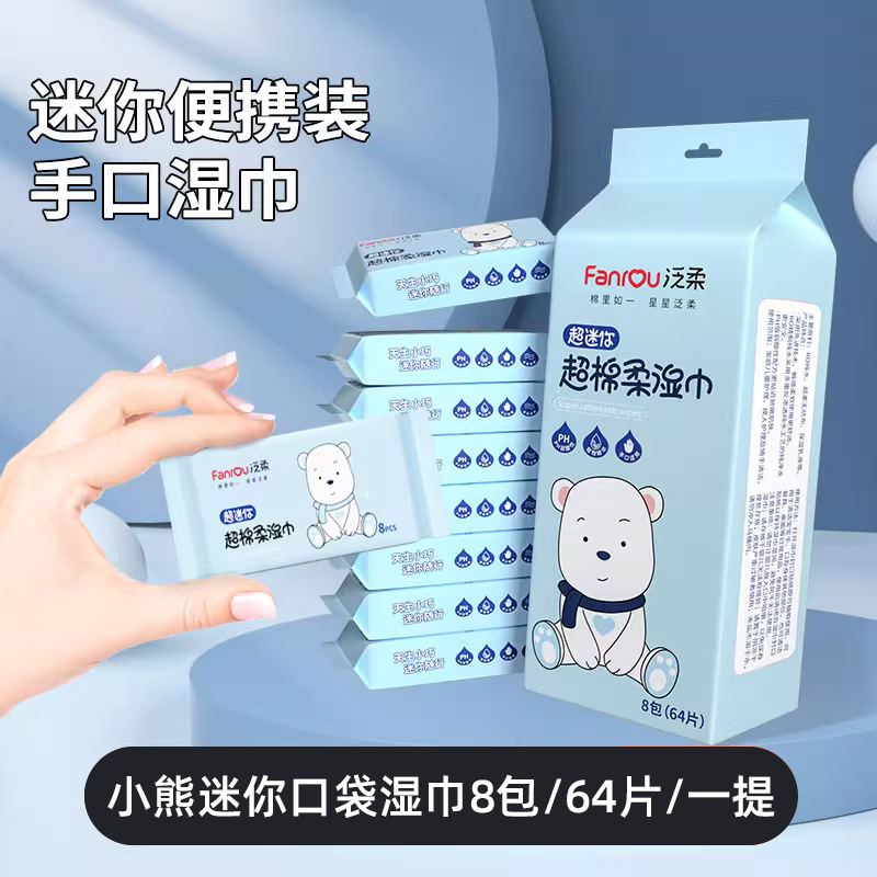 휴대용 미니 물티슈 작은 팩 유아 손과 입 어린이 휴대용 청소 물티슈 미니 아기 물티슈 도매
