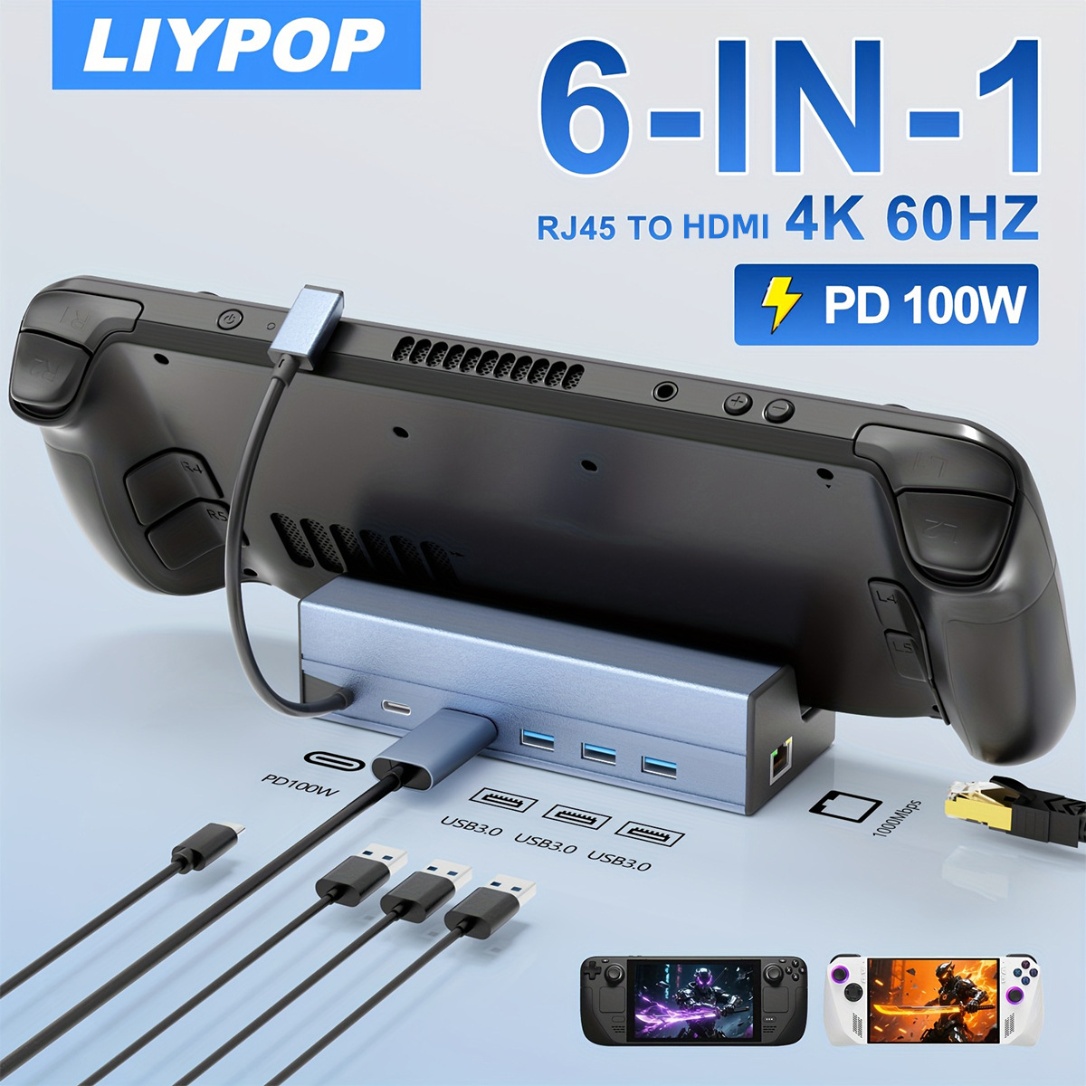 타입C 확장 도크 휴대용 확장 도크 베이스 HDMI 스크린 프로젝션 4K60Hz 기가비트 네트워크 포트 6-in-1 확장 도크