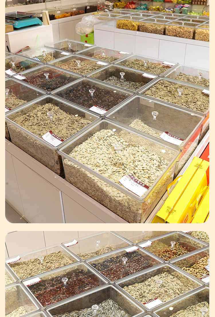 아크릴 밀봉 상자 슈퍼마켓 대량 식품 상자 방진 간식 건조한 과일 상자 밀봉 상자 상자 투명한 두껍게스토어 가기