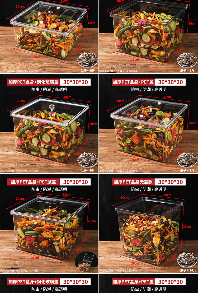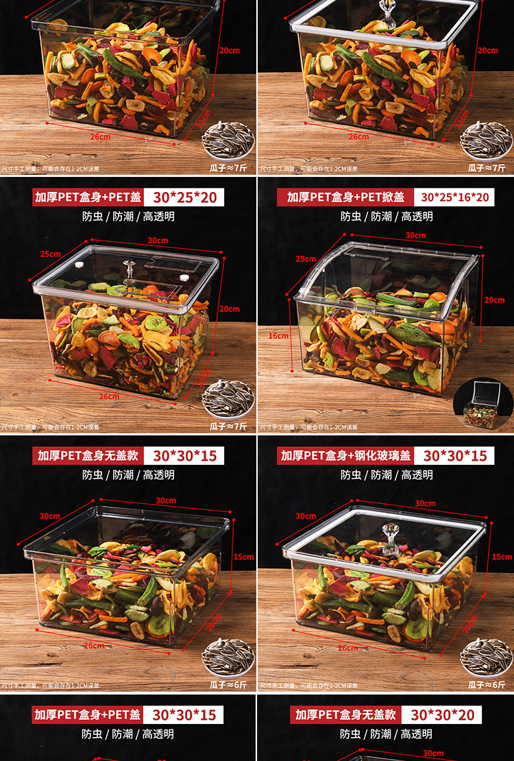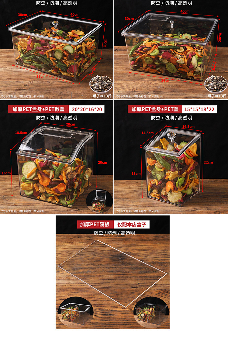 아크릴 밀봉 상자 슈퍼마켓 대량 식품 상자 방진 간식 건조한 과일 상자 밀봉 상자 상자 투명한 두껍게