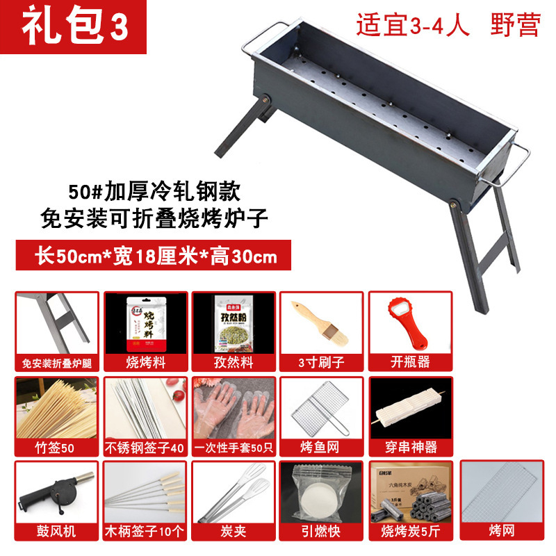 • 50#패키지 3 [클래식 냉간 압연 강철 조립 접이식 바베큐 그릴] 무료 16종 세트