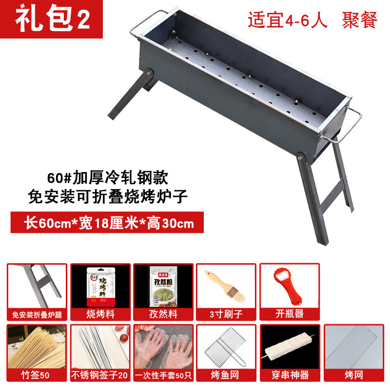 • 60#패키지 1 [클래식 냉간 압연 강철 조립 접이식 바베큐 그릴] 무료 5종 세트