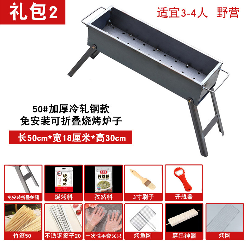 • 50#패키지 1 [클래식 냉간 압연 강철 조립 접이식 바베큐 그릴] 무료 5종 세트