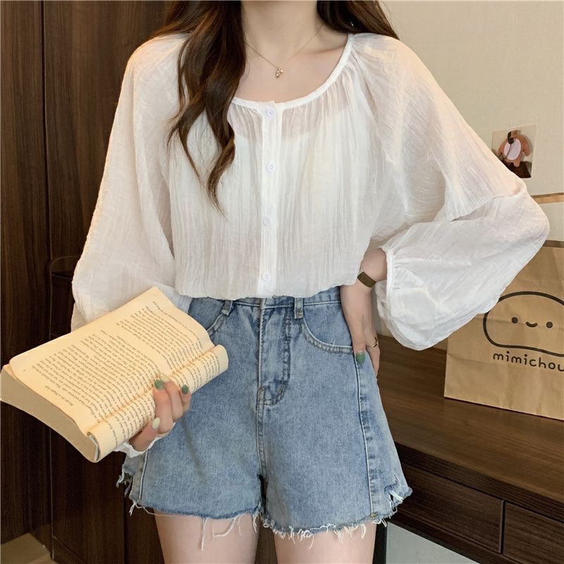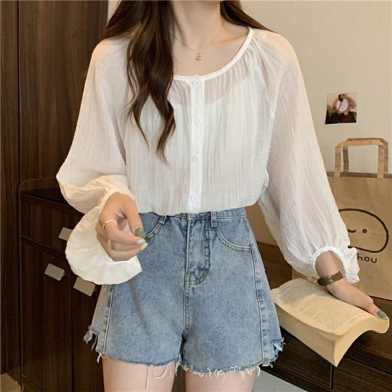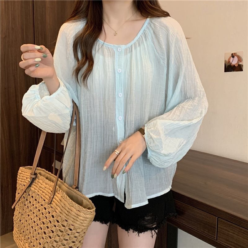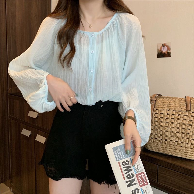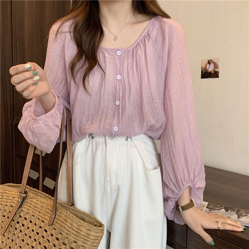 프랑스 스타일의 부드러운 스타일 셔츠 여성용 긴팔 여름 디자인 센스 니쉬 세련된 셔츠 올 매치 선스크린 셔츠 독특한 탑스토어 가기
