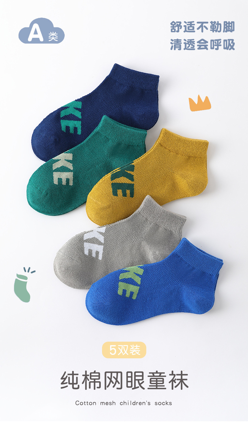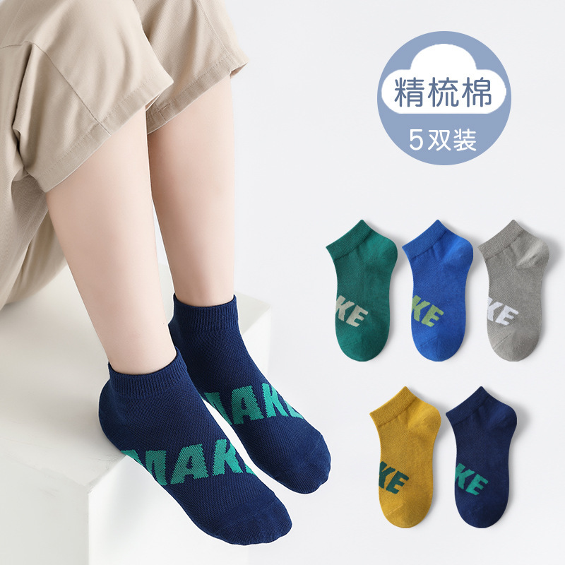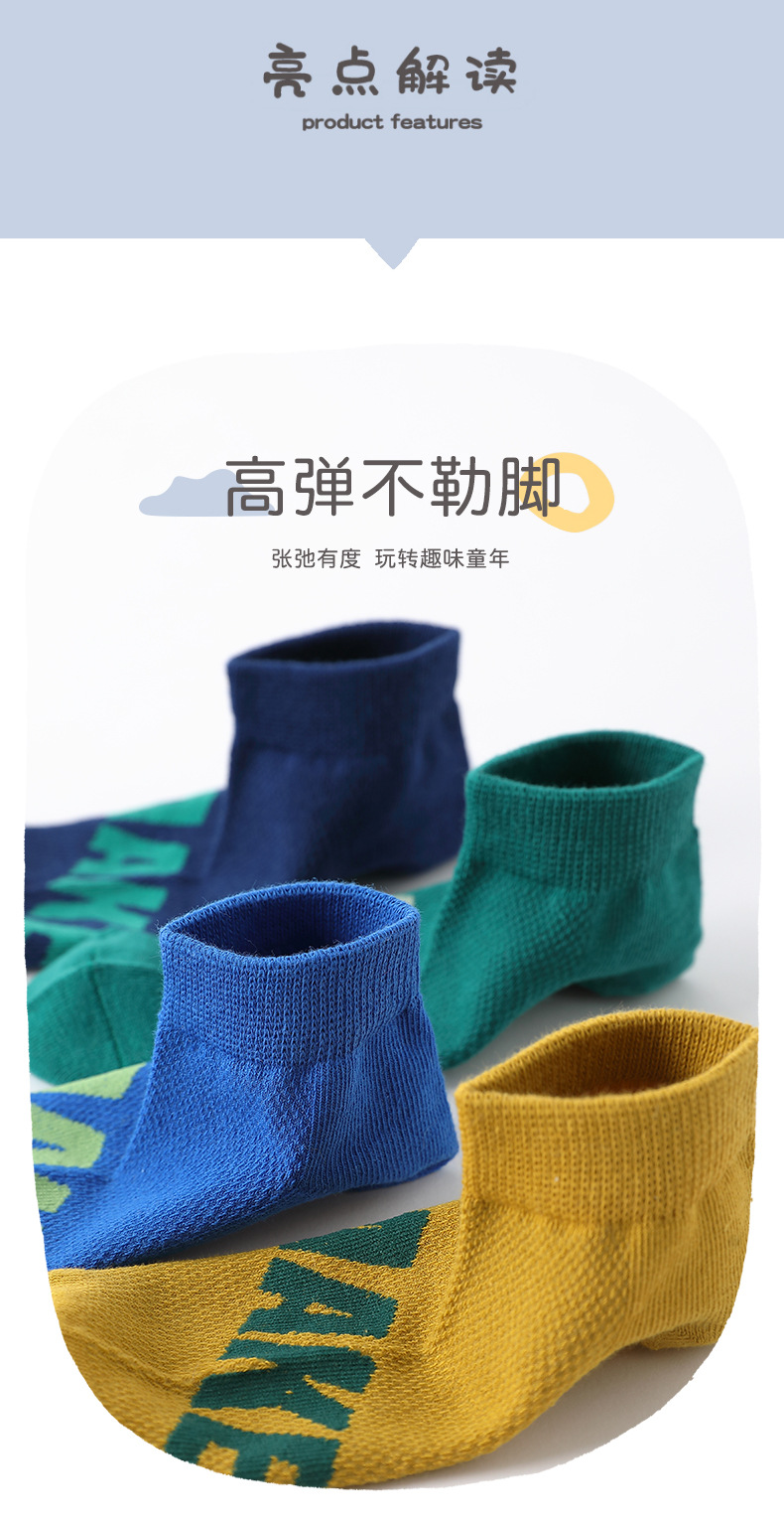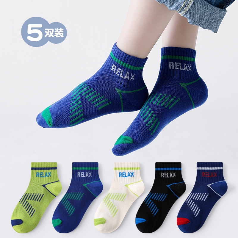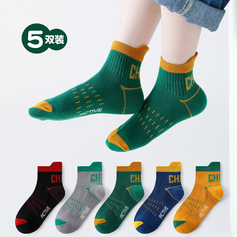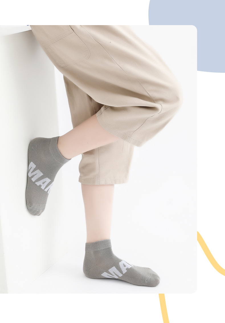 남학생 양말 면 중대형 어린이 및 학생을위한 여름 얇은 스포츠 양말 어린이 봄과 여름 메쉬 실행 편지 짧은 양말