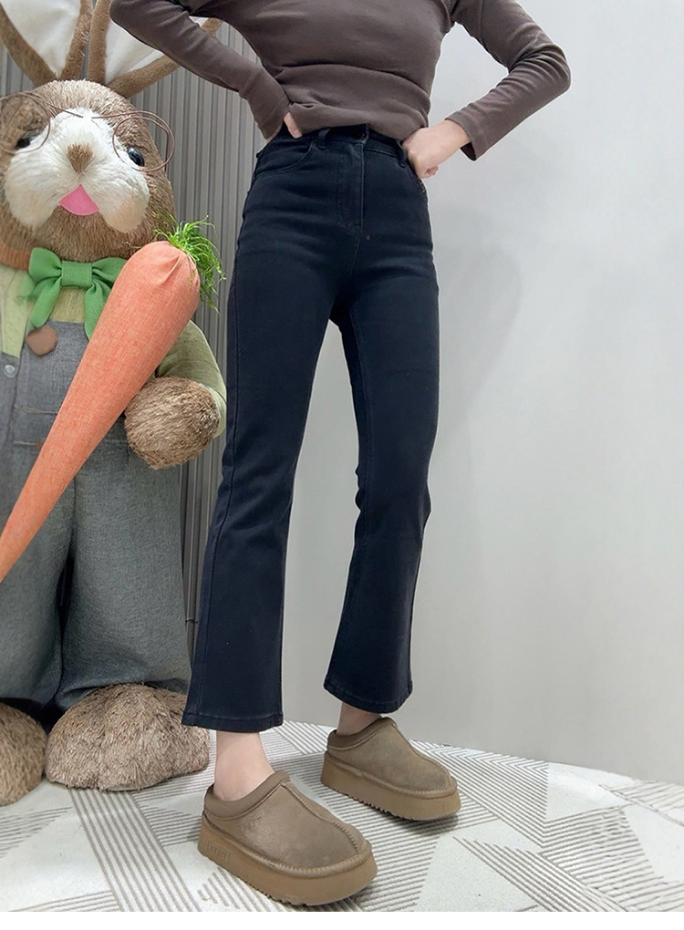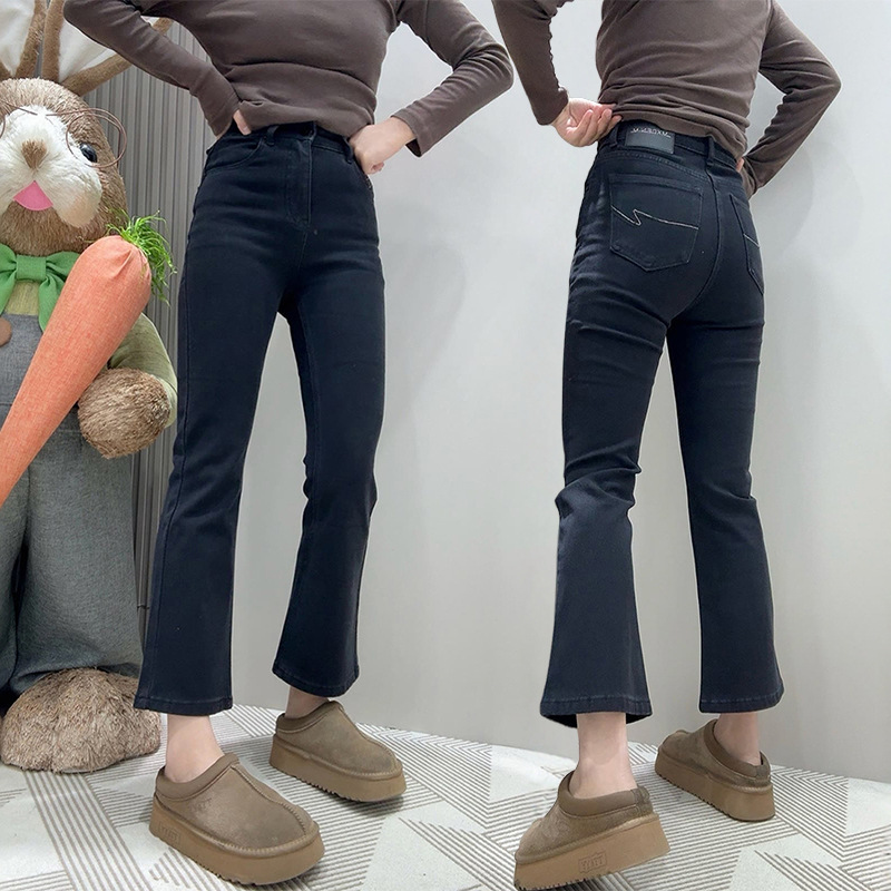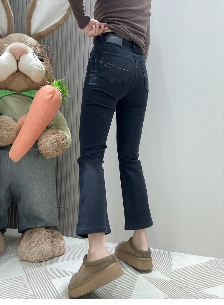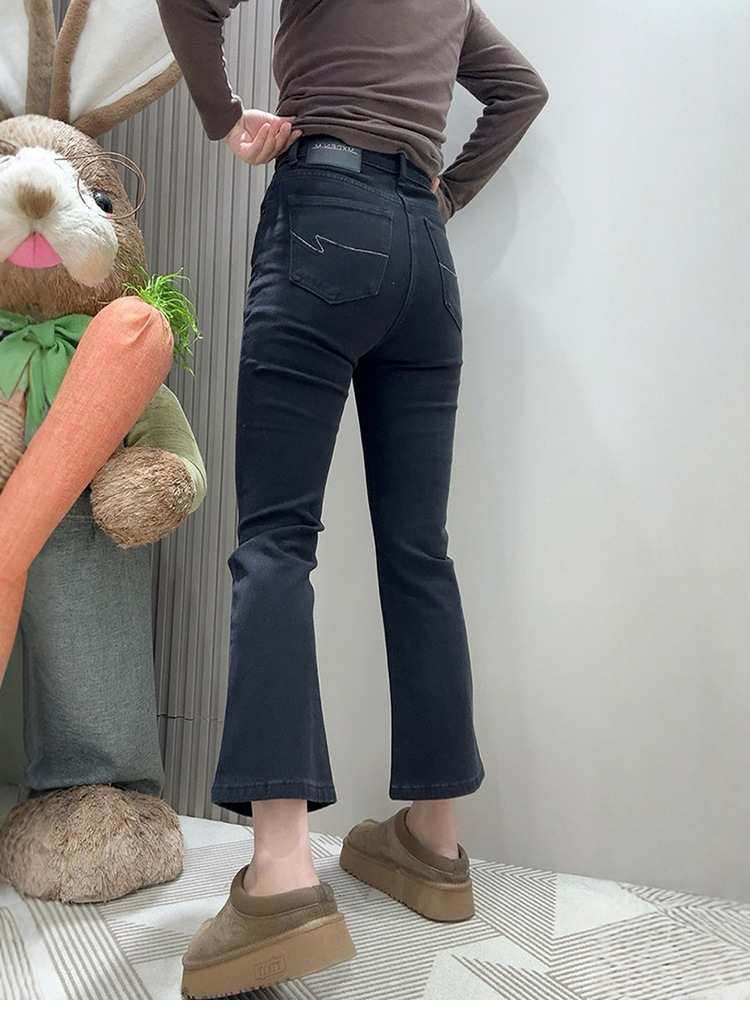 小个子高腰显瘦微喇牛仔裤女2025年春季新款大码九分弹力喇叭裤子