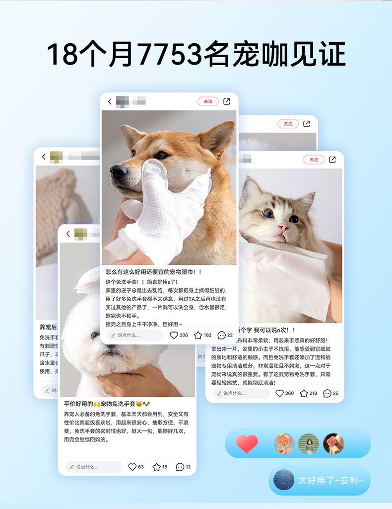 애완 동물 워시없는 장갑은 유니버설 고양이 개 목욕 청소 오염 제거 드라이 클리닝 워시없는 일회용 장갑을 닦습니다.스토어 가기
