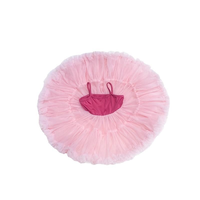 하트 여러 소녀 원피스 여름 새로운 푹신한 서스펜더 거즈 스커트 원피스 소녀 메쉬 공주 스커트
