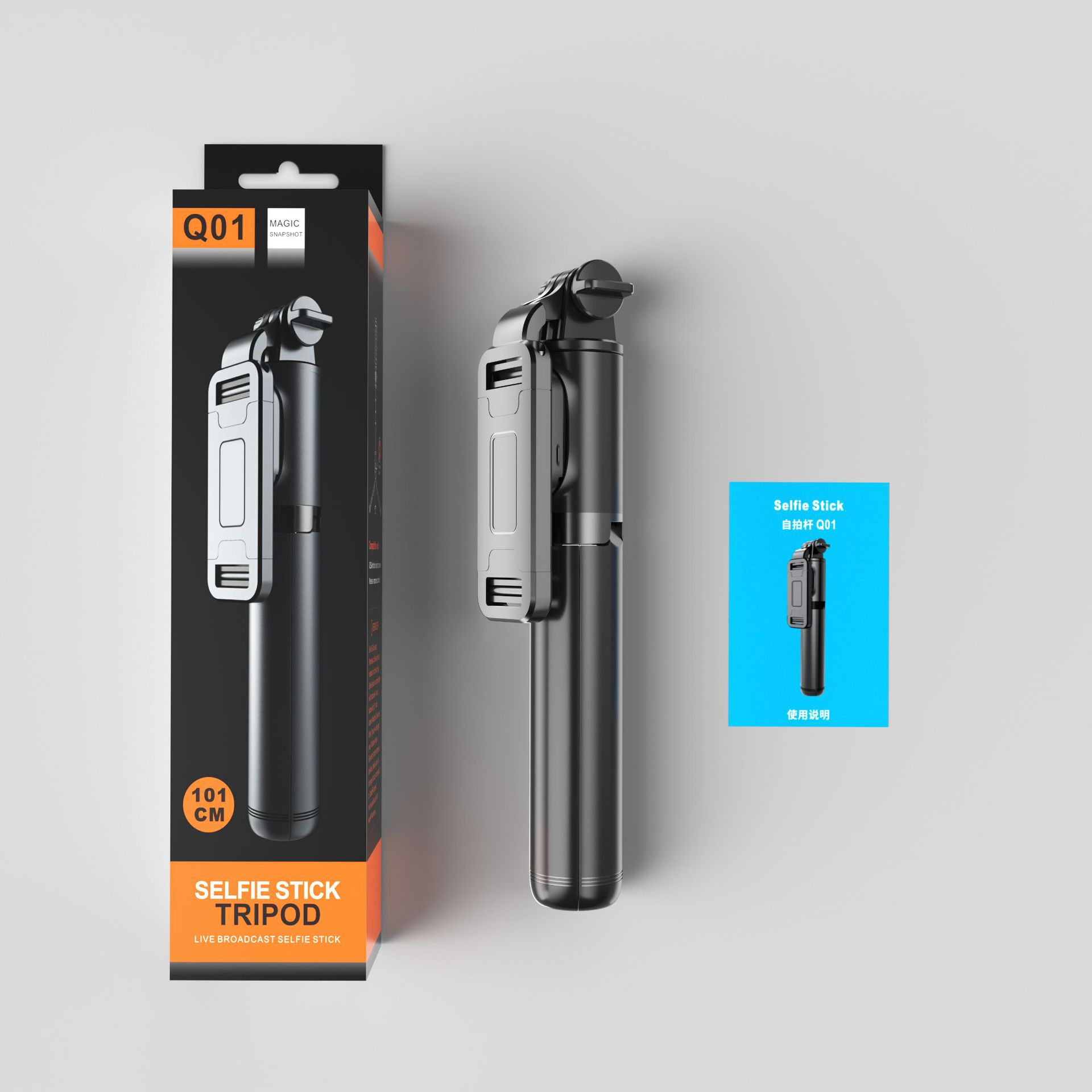 • 【Q01-블랙- 1m 】스테인리스 스틸 샤프트 + 안정적인 삼각대 + 블루투스 리모컨