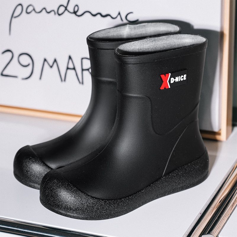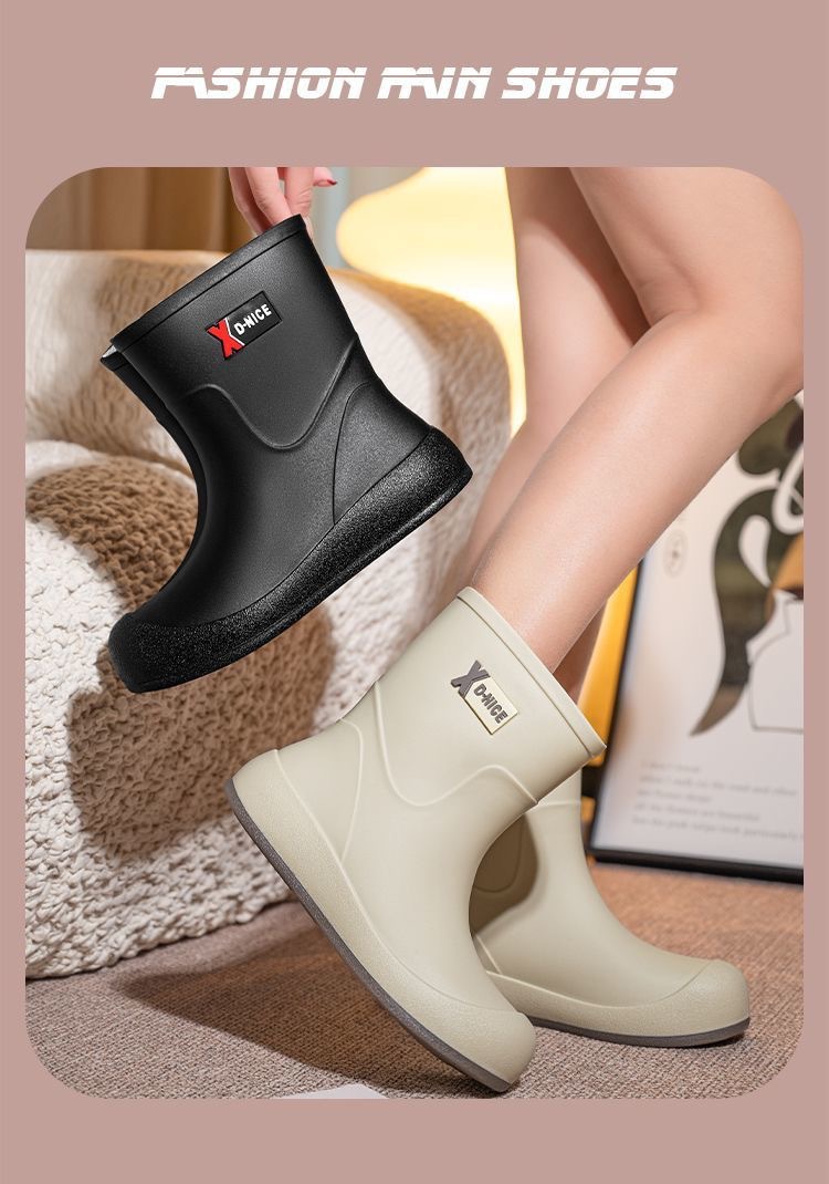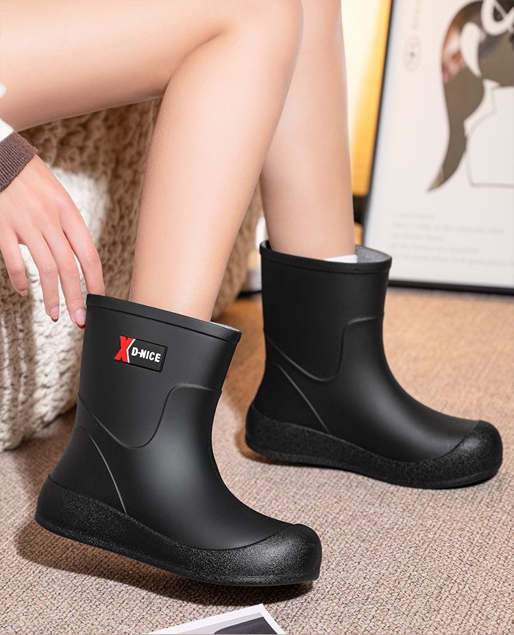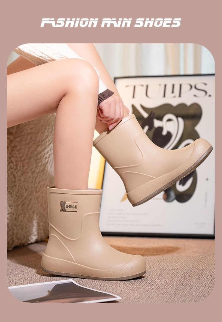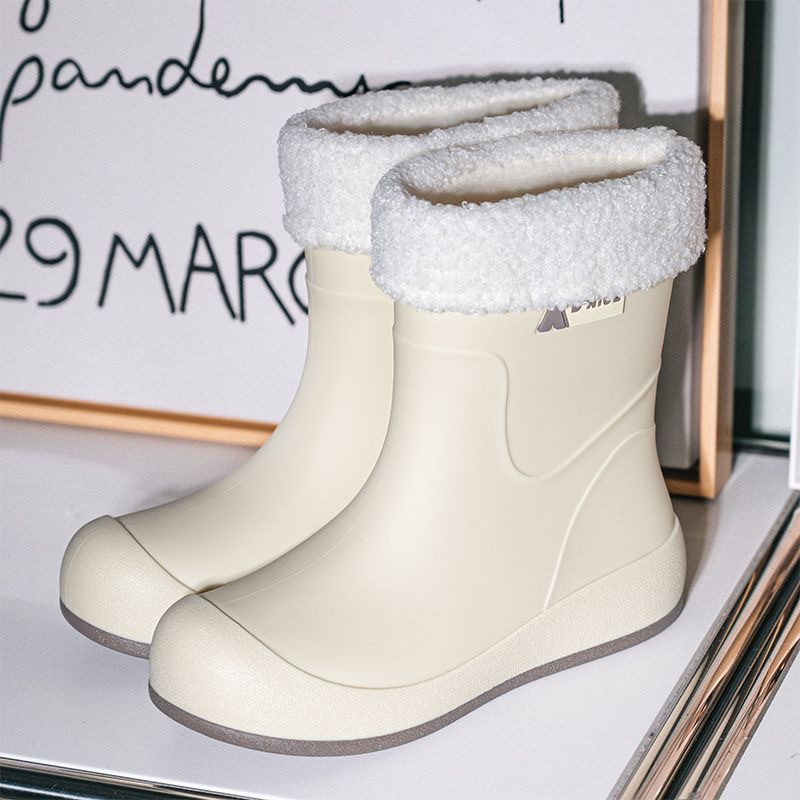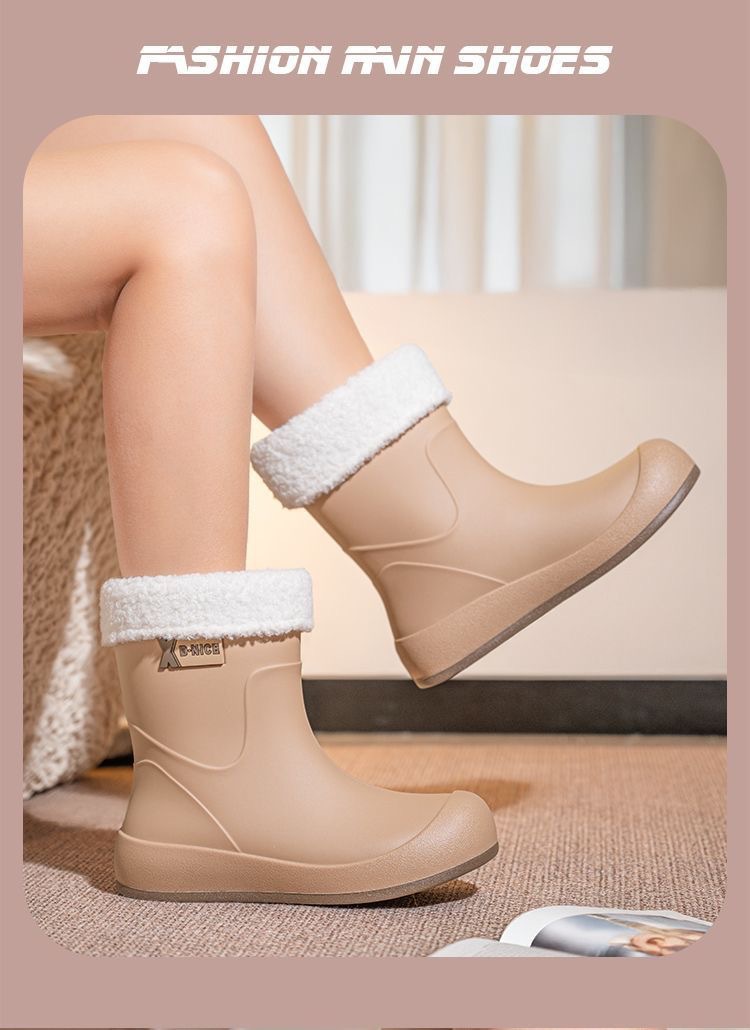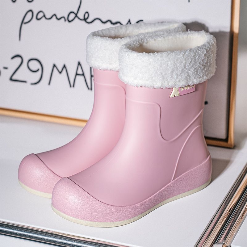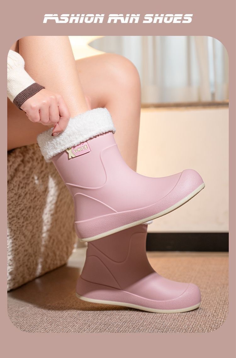 일본식 장화 여성용 겨울 기모 새로운 도착 장화 주방 작업 미끄럼 방지 고무 신발 여성 성인 외부 물 신발스토어 가기