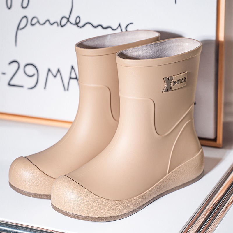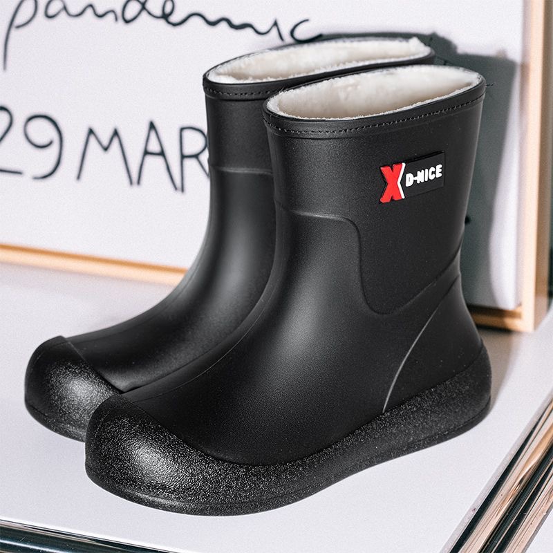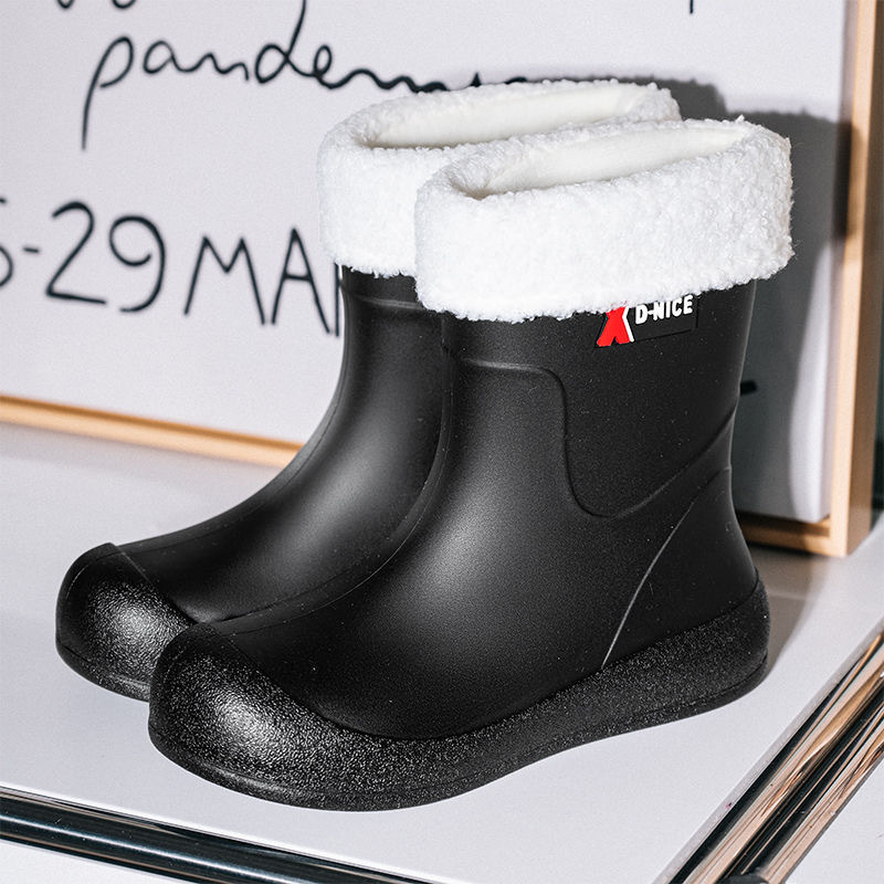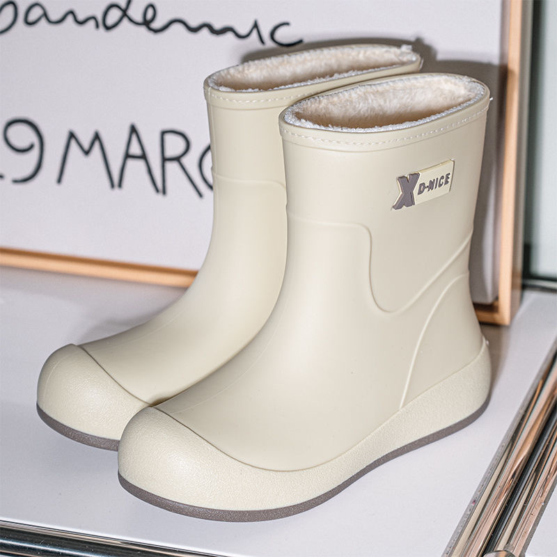 일본식 장화 여성용 겨울 기모 새로운 도착 장화 주방 작업 미끄럼 방지 고무 신발 여성 성인 외부 물 신발