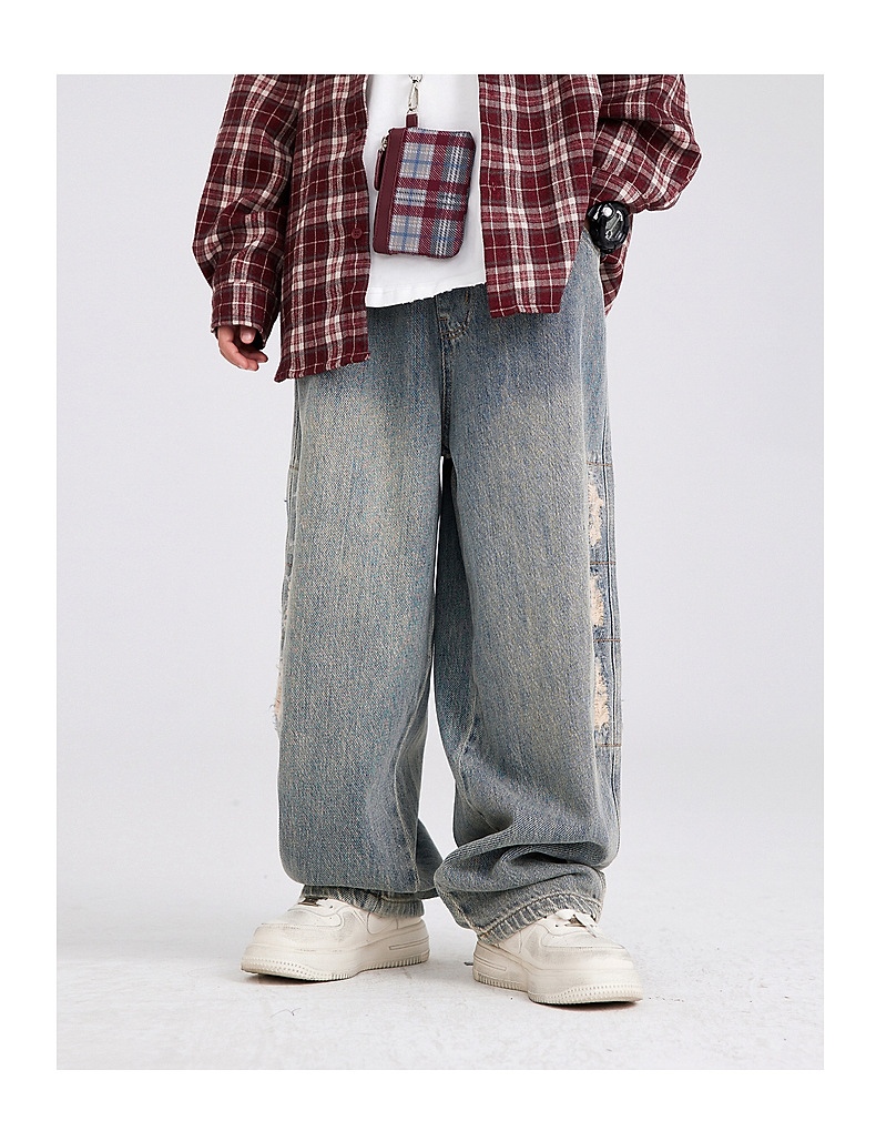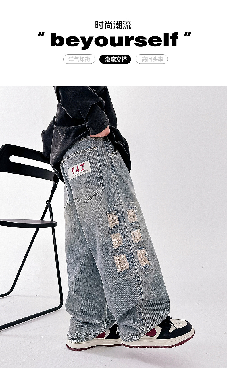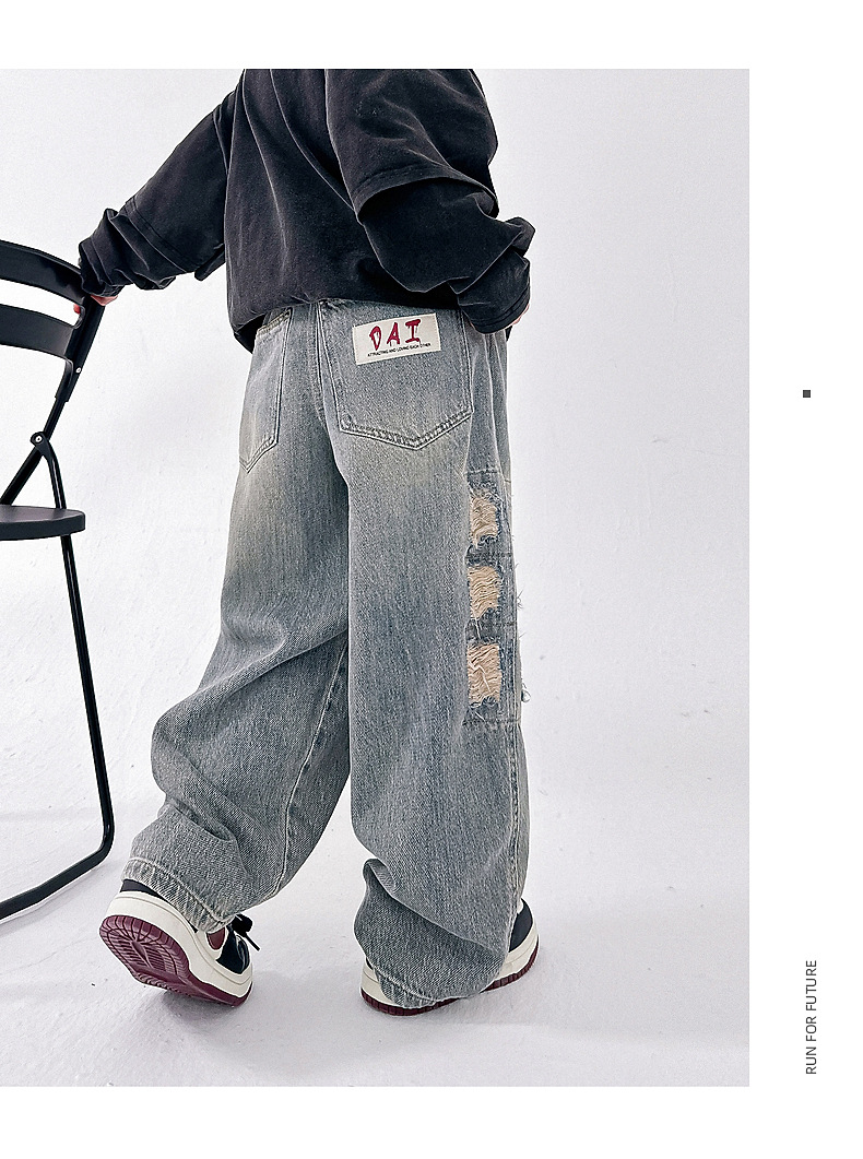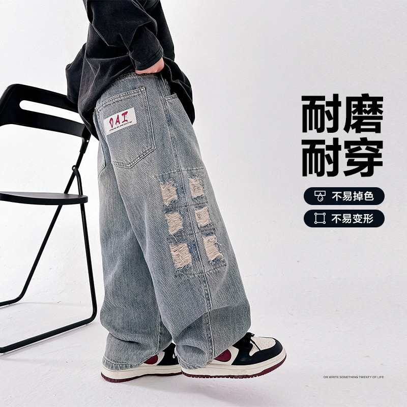 남아용 가을 찢어진 일자 와이드 데님 팬츠 2025 신상 아동 남아 가을옷 멋진 루즈핏 바지