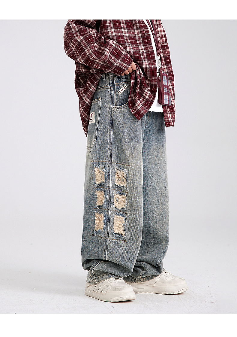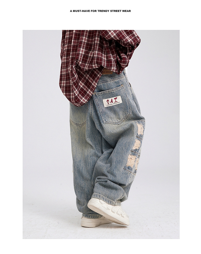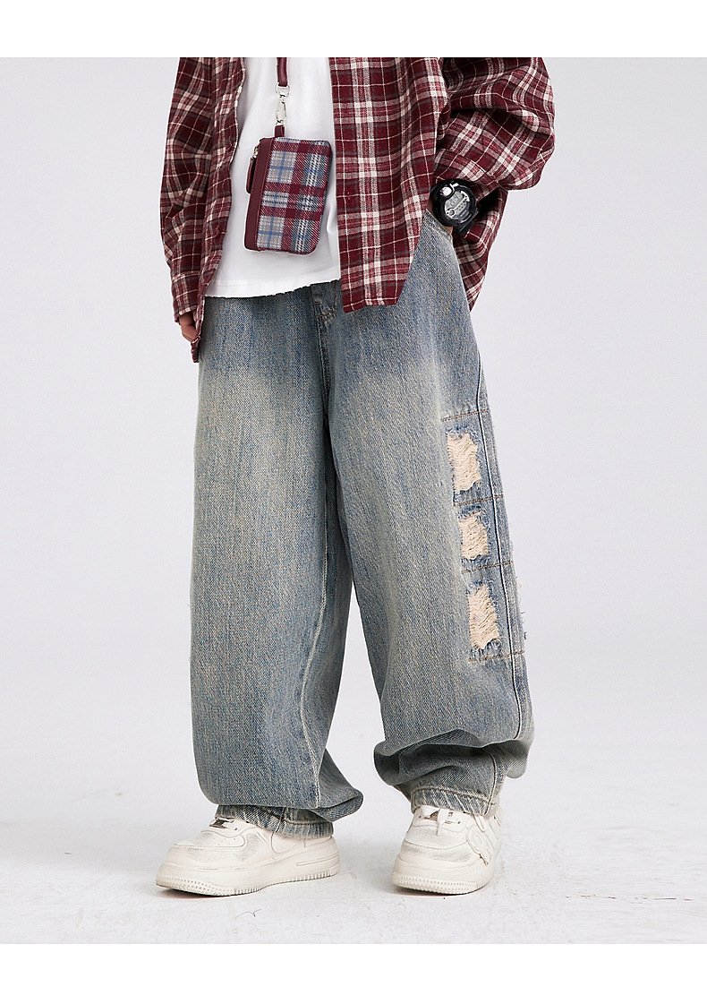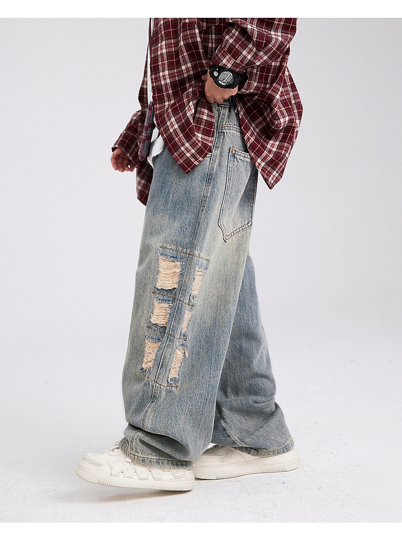 남아용 가을 찢어진 일자 와이드 데님 팬츠 2025 신상 아동 남아 가을옷 멋진 루즈핏 바지