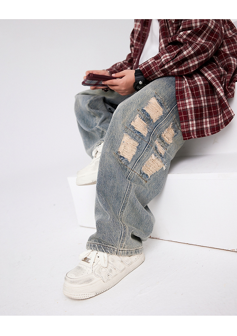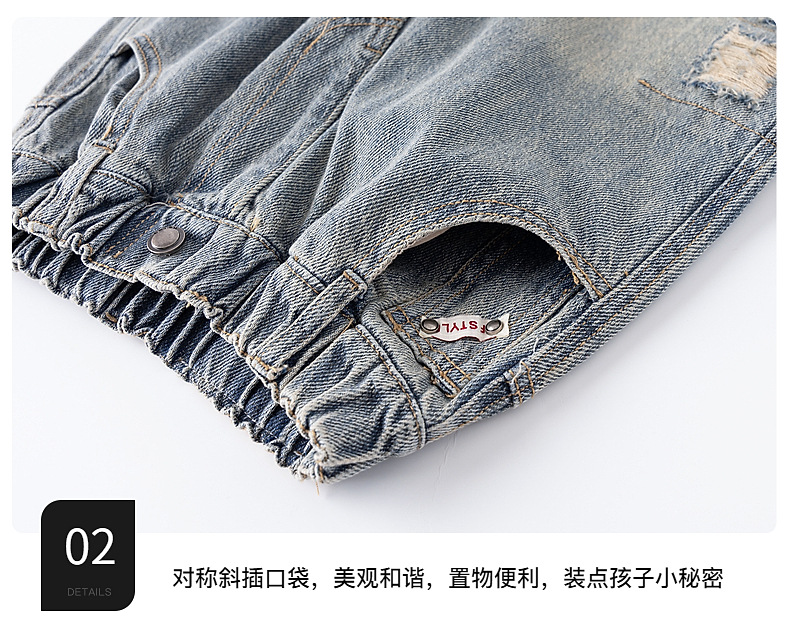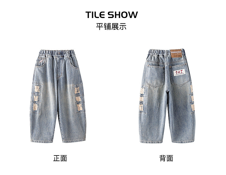 남아용 가을 찢어진 일자 와이드 데님 팬츠 2025 신상 아동 남아 가을옷 멋진 루즈핏 바지스토어 가기