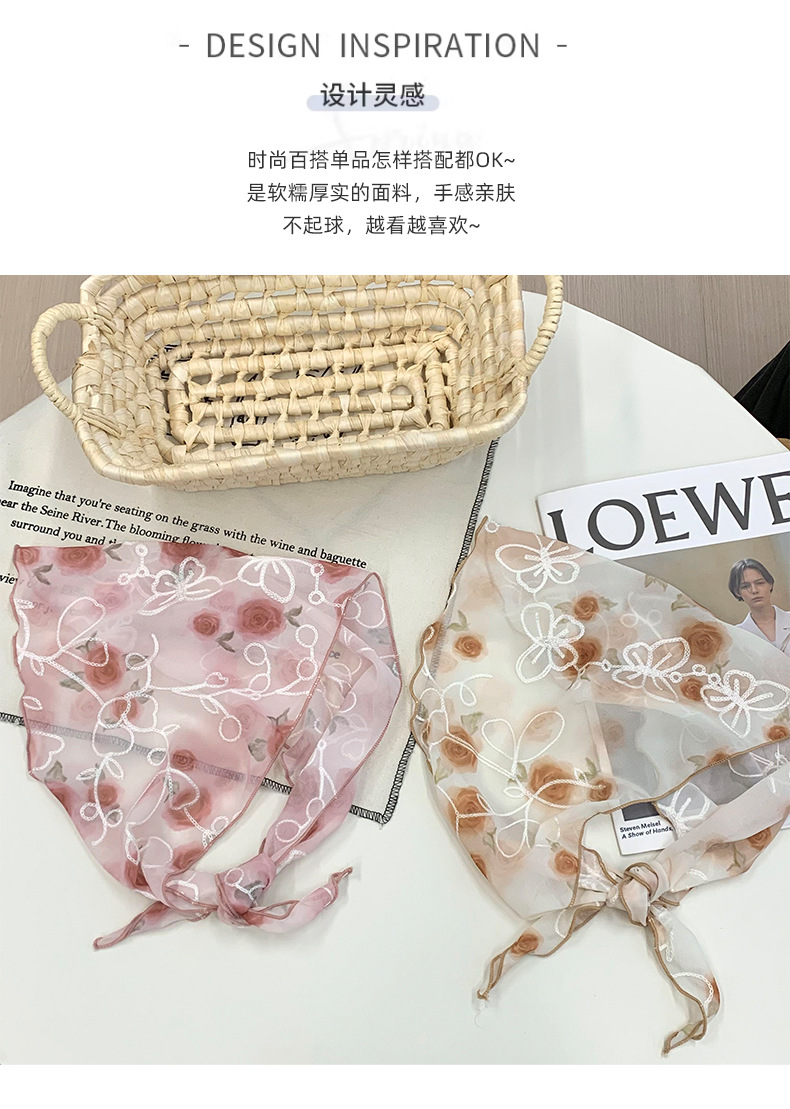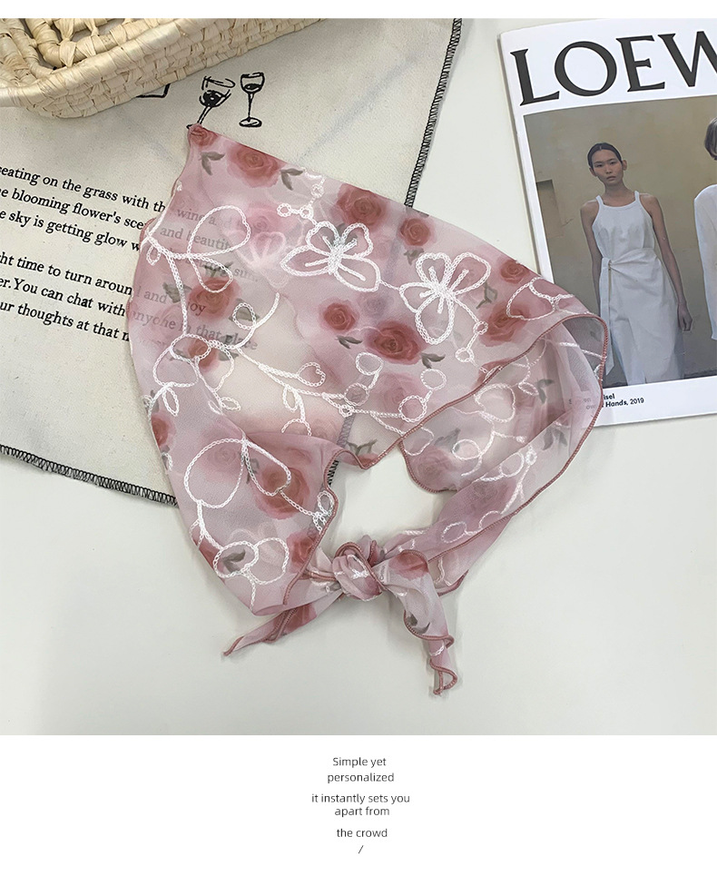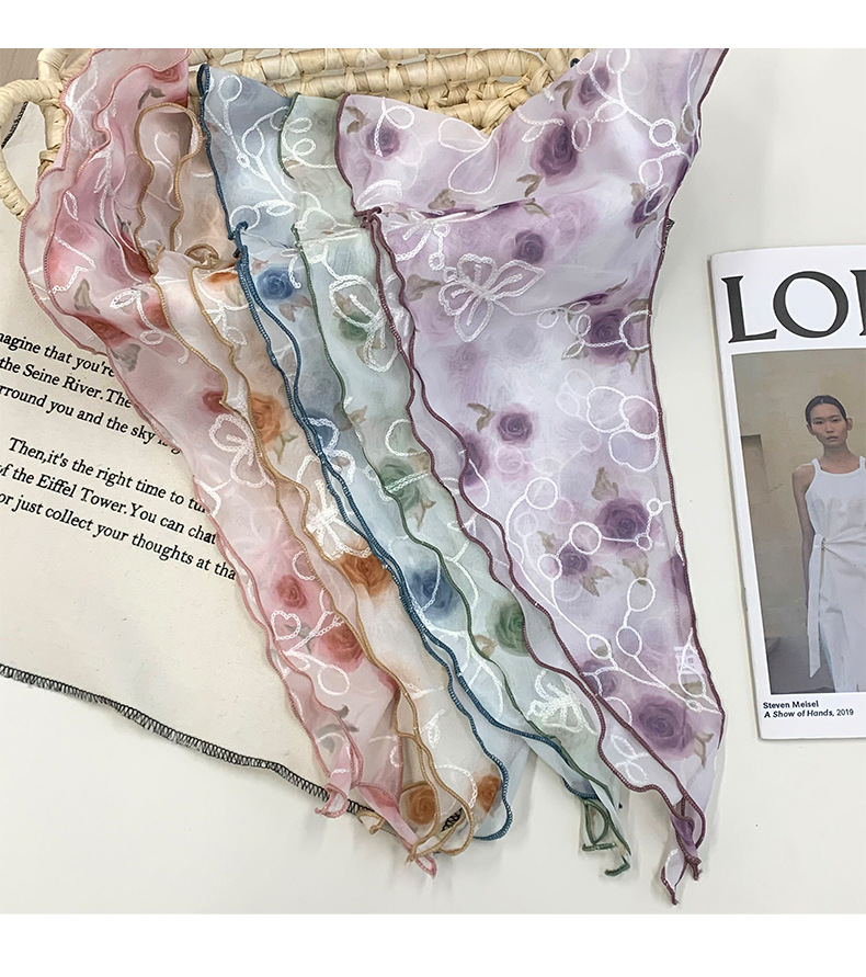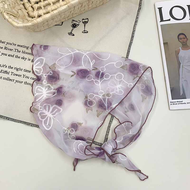 머리 스카프 여름 여성의 목가적 인 새로운 스타일 올 매치 실크 스카프 고급 센스 멀티 사용 골동품 헤어 벨트 헤어 액세서리 헤드폰 삼각형 스카프 넥타이 허리