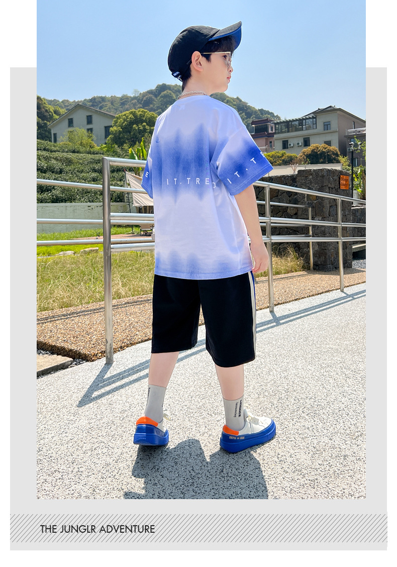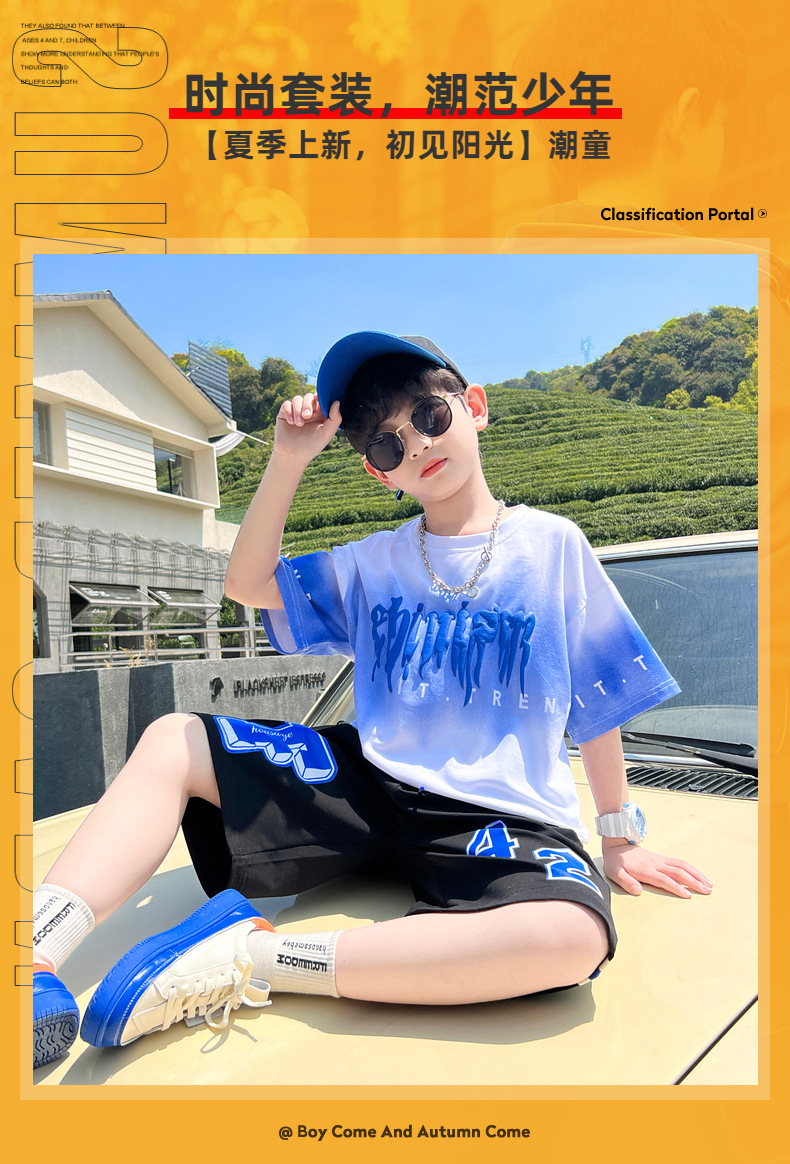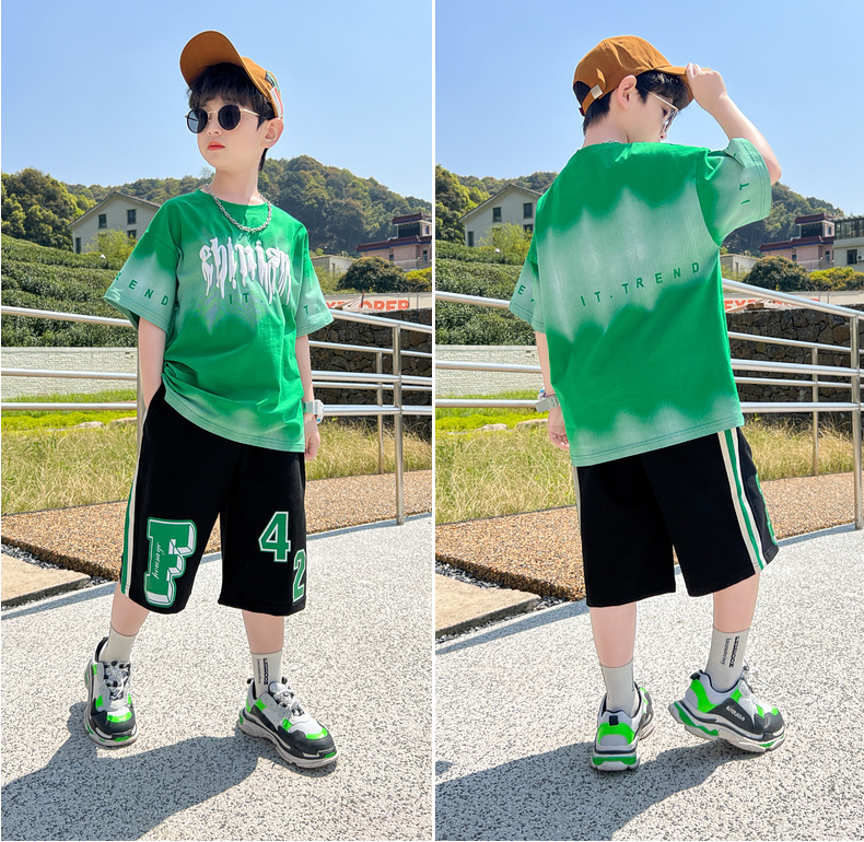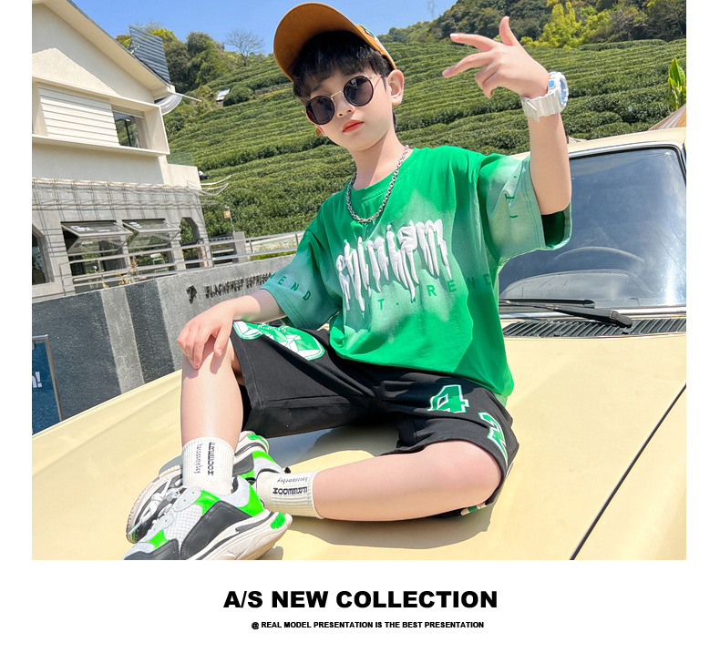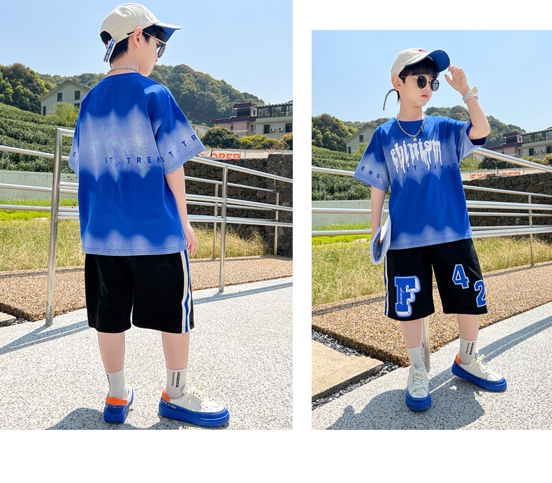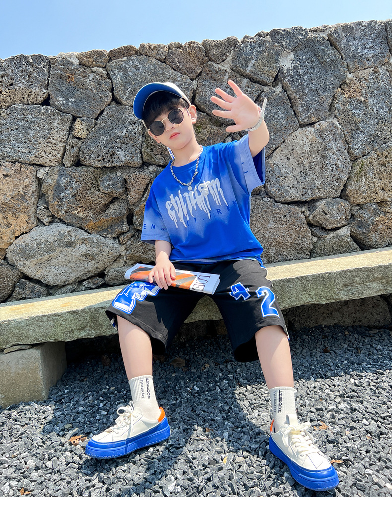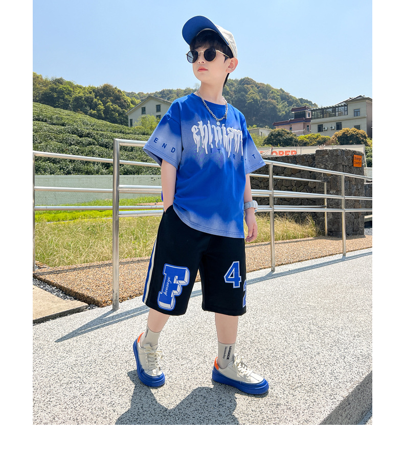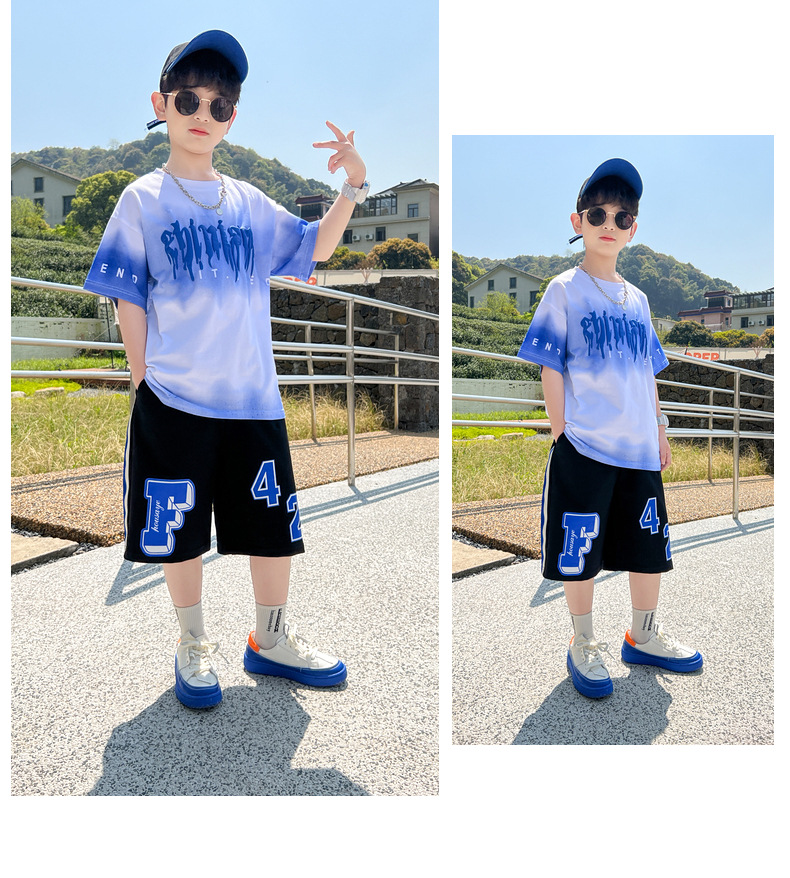 남아 정장 세트 여름 신상 2026 스타일리쉬 아동 반팔 투피스 세트 트렌디 브랜드 캐주얼 중대형 아동 여름옷