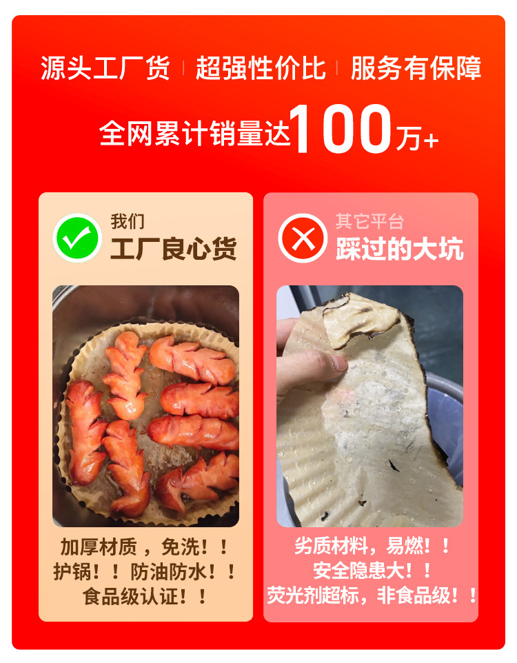 에어 프라이어 특수 종이 오븐 가정용 오일 흡수 종이 트레이 식품 등급 실리콘 오일 종이 트레이 베이킹 종이 패드 주석 종이 식품