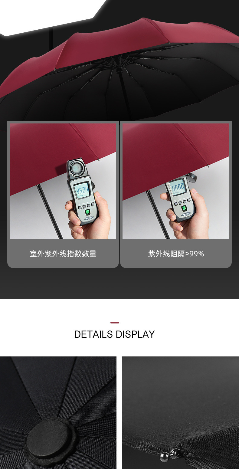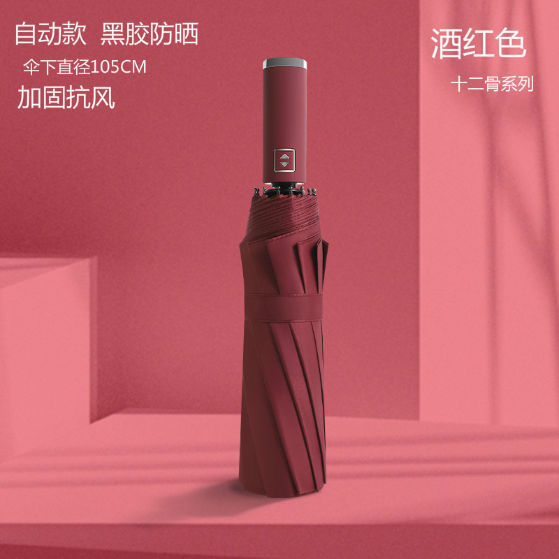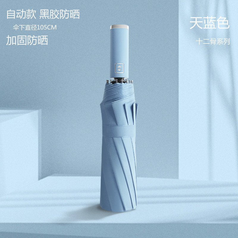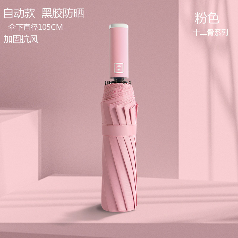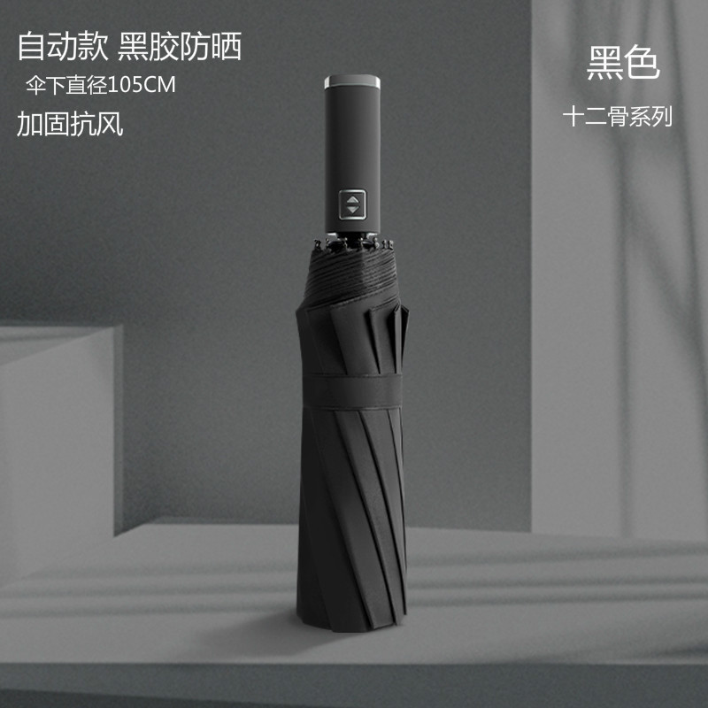 12-뼈 대형 우산 접히는 자동 두 배 사람 맑고 비 이중 사용 학생 남성과 여성의 검은 고무 선 스크린 야외 도매 폭풍스토어 가기