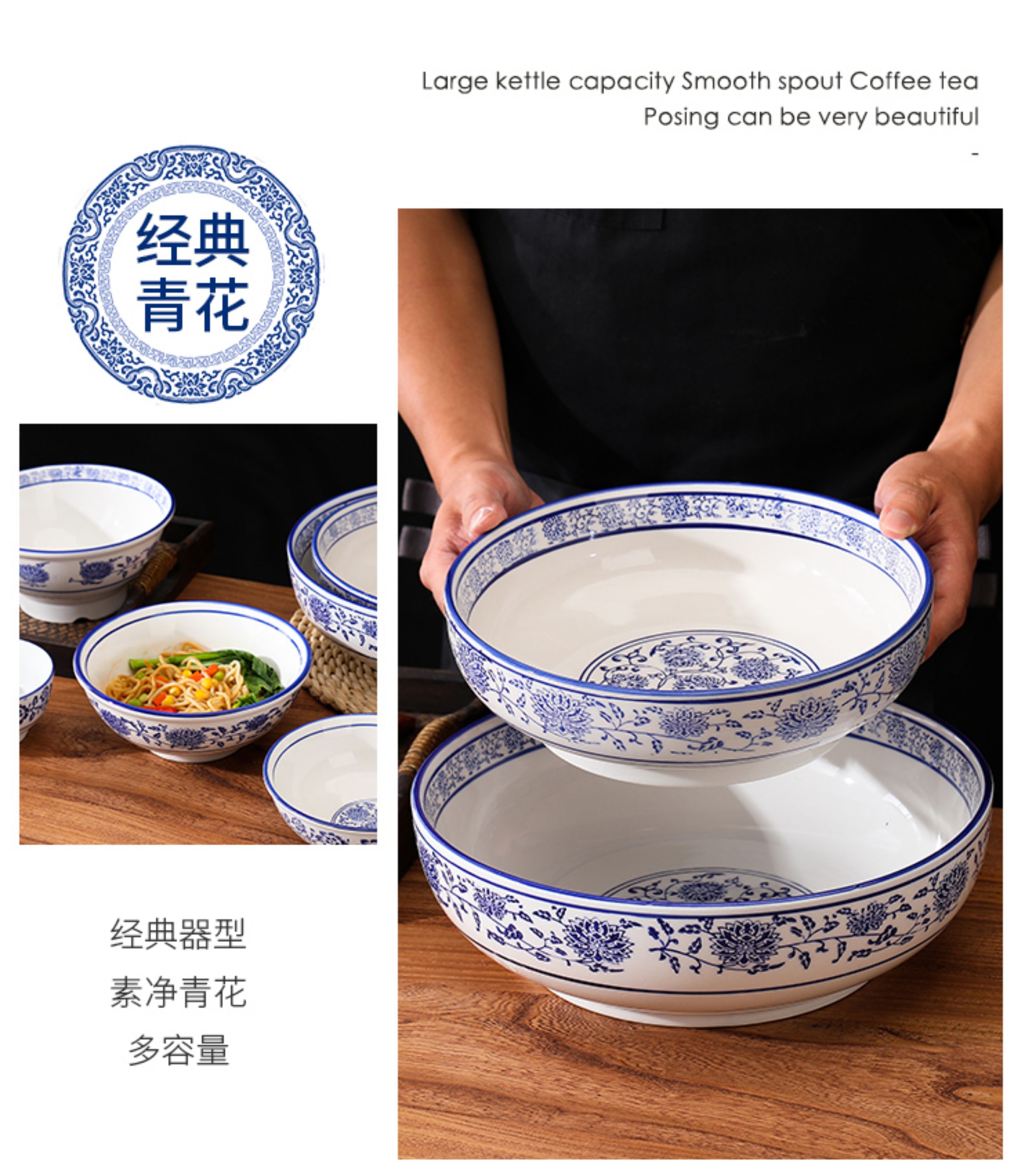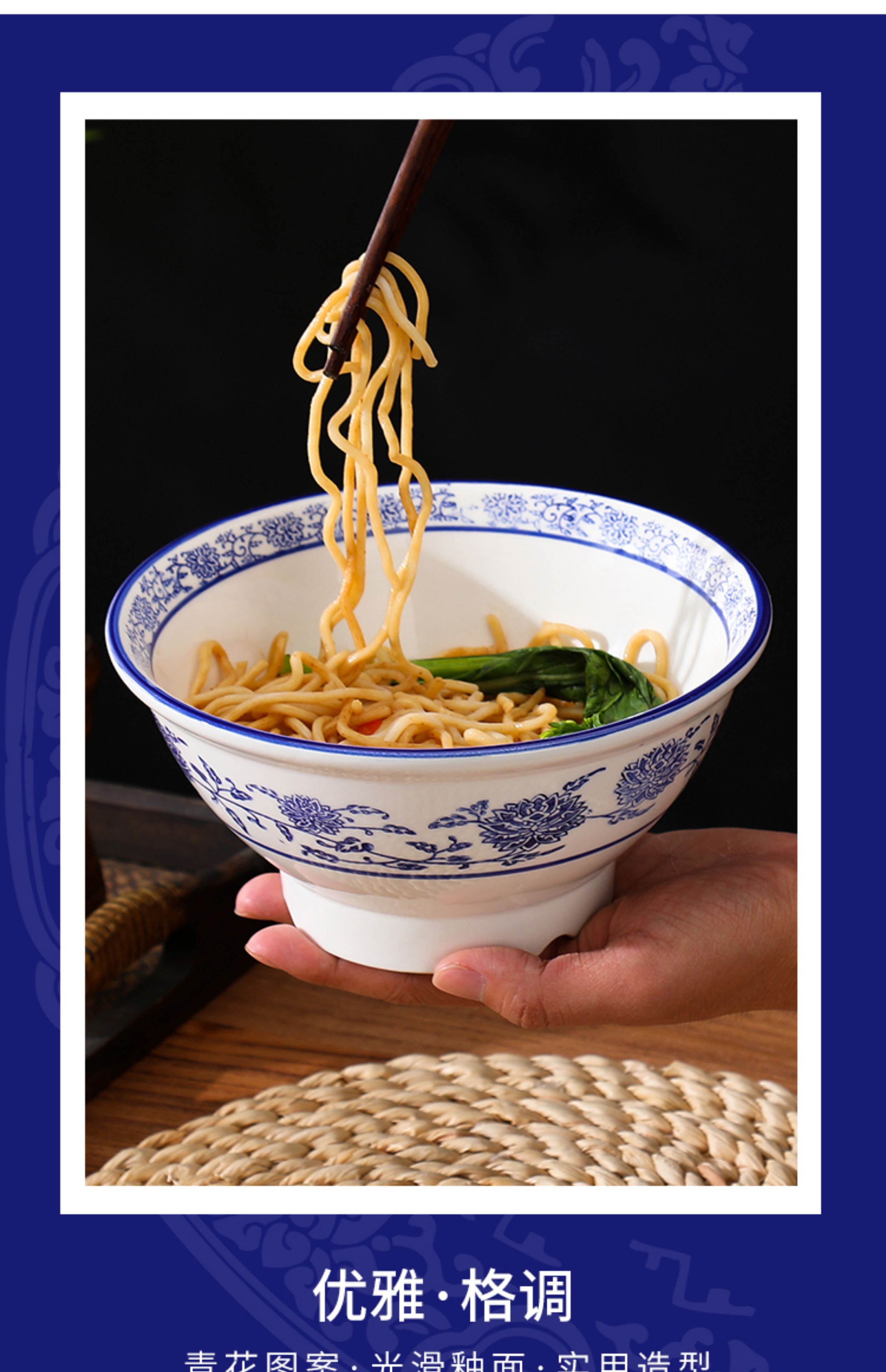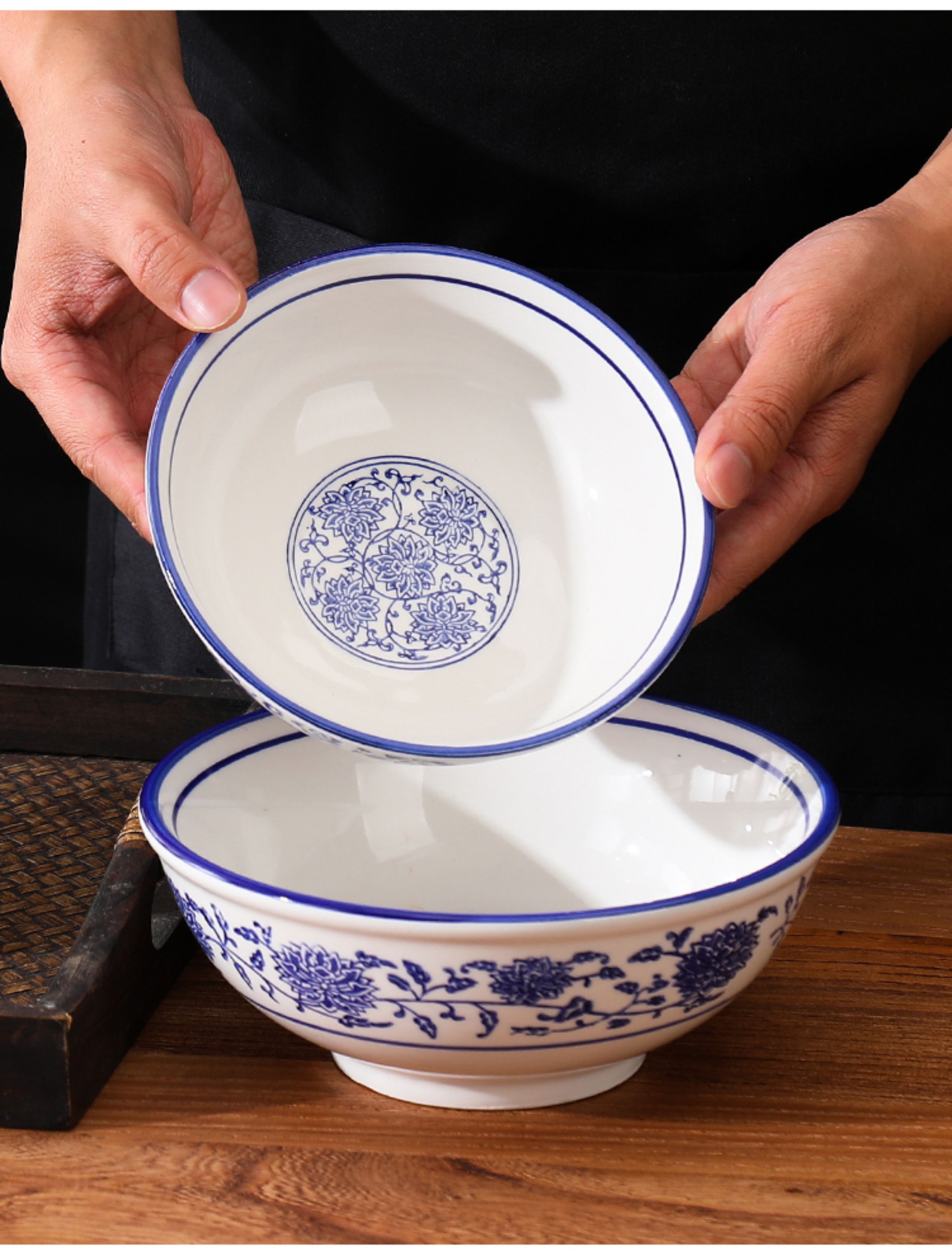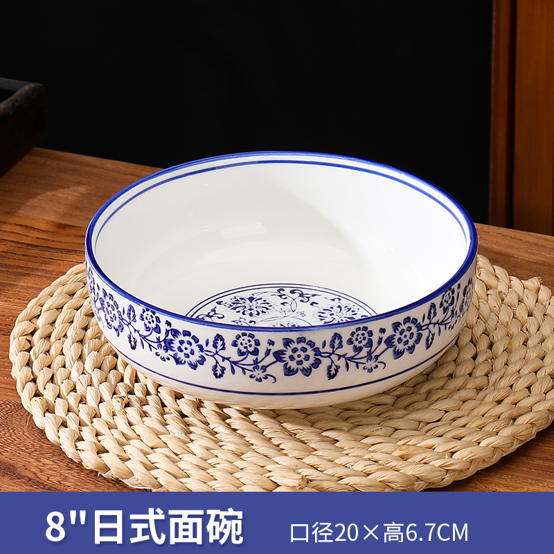 상업용 쇠고기 국수 가정용 말라탕 그릇 파란색과 흰색 도자기 라면 큰 그릇 중국 그릇 수프 그릇 세라믹 식기류 빈티지스토어 가기