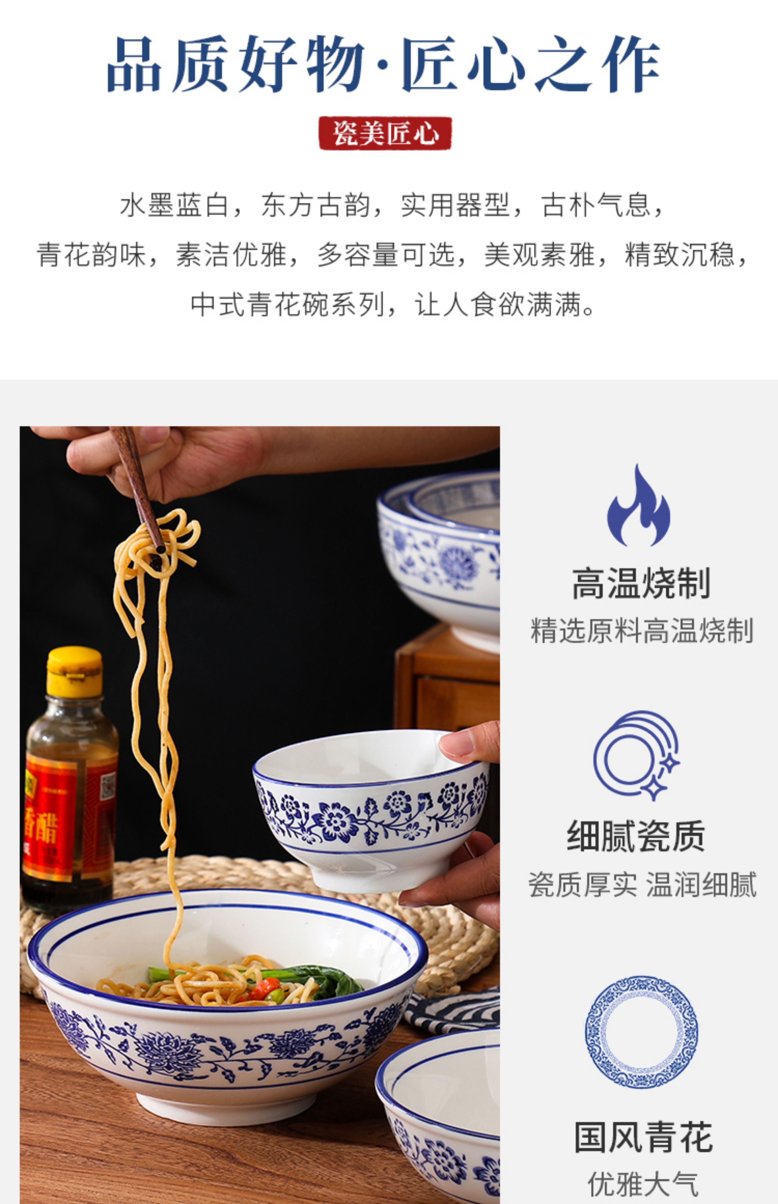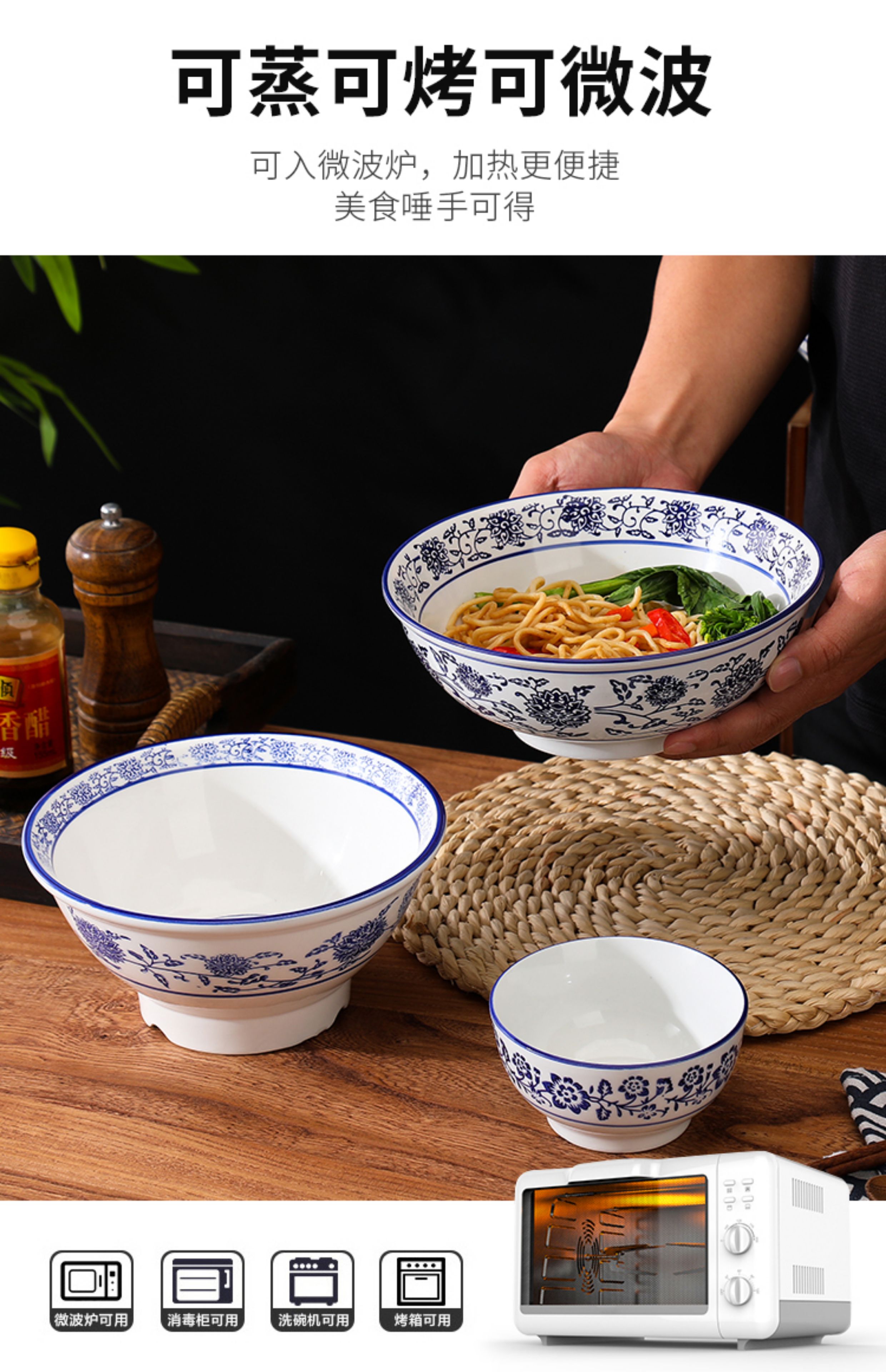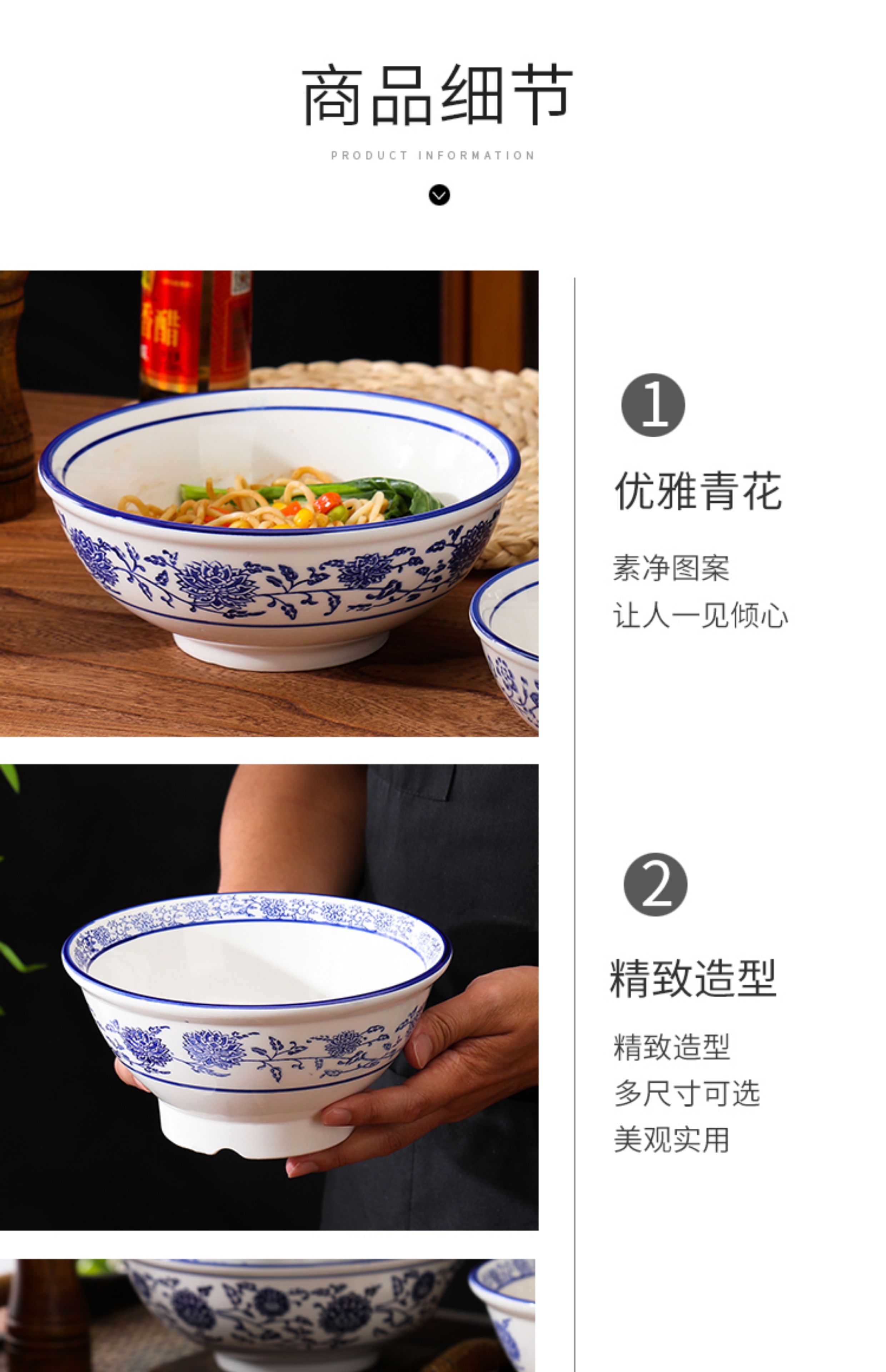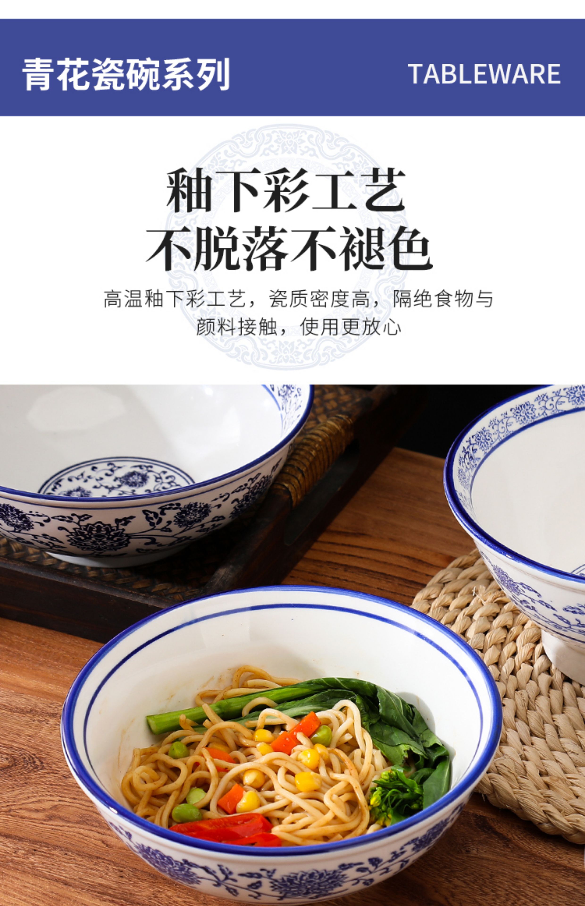 상업용 쇠고기 국수 가정용 말라탕 그릇 파란색과 흰색 도자기 라면 큰 그릇 중국 그릇 수프 그릇 세라믹 식기류 빈티지스토어 가기