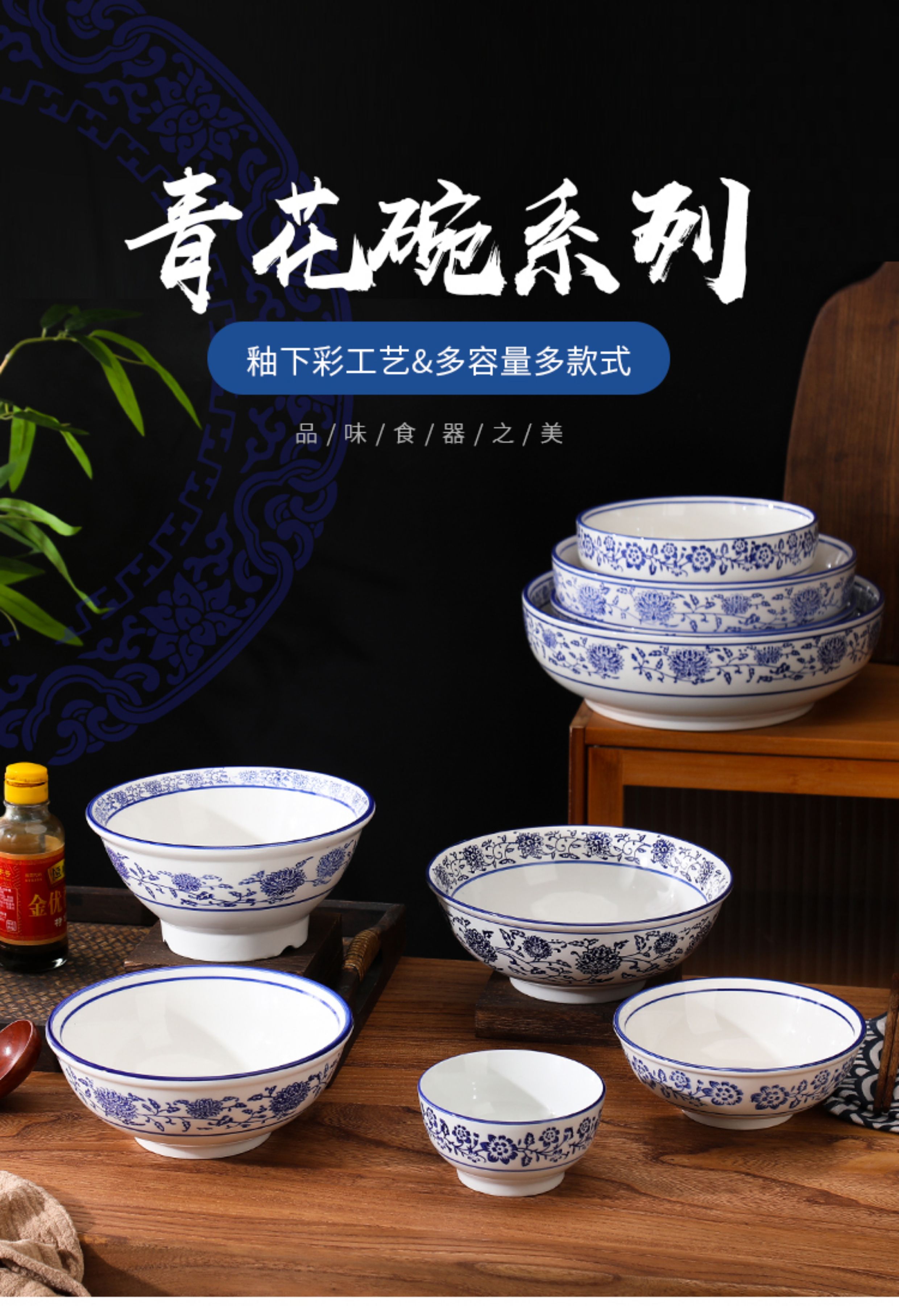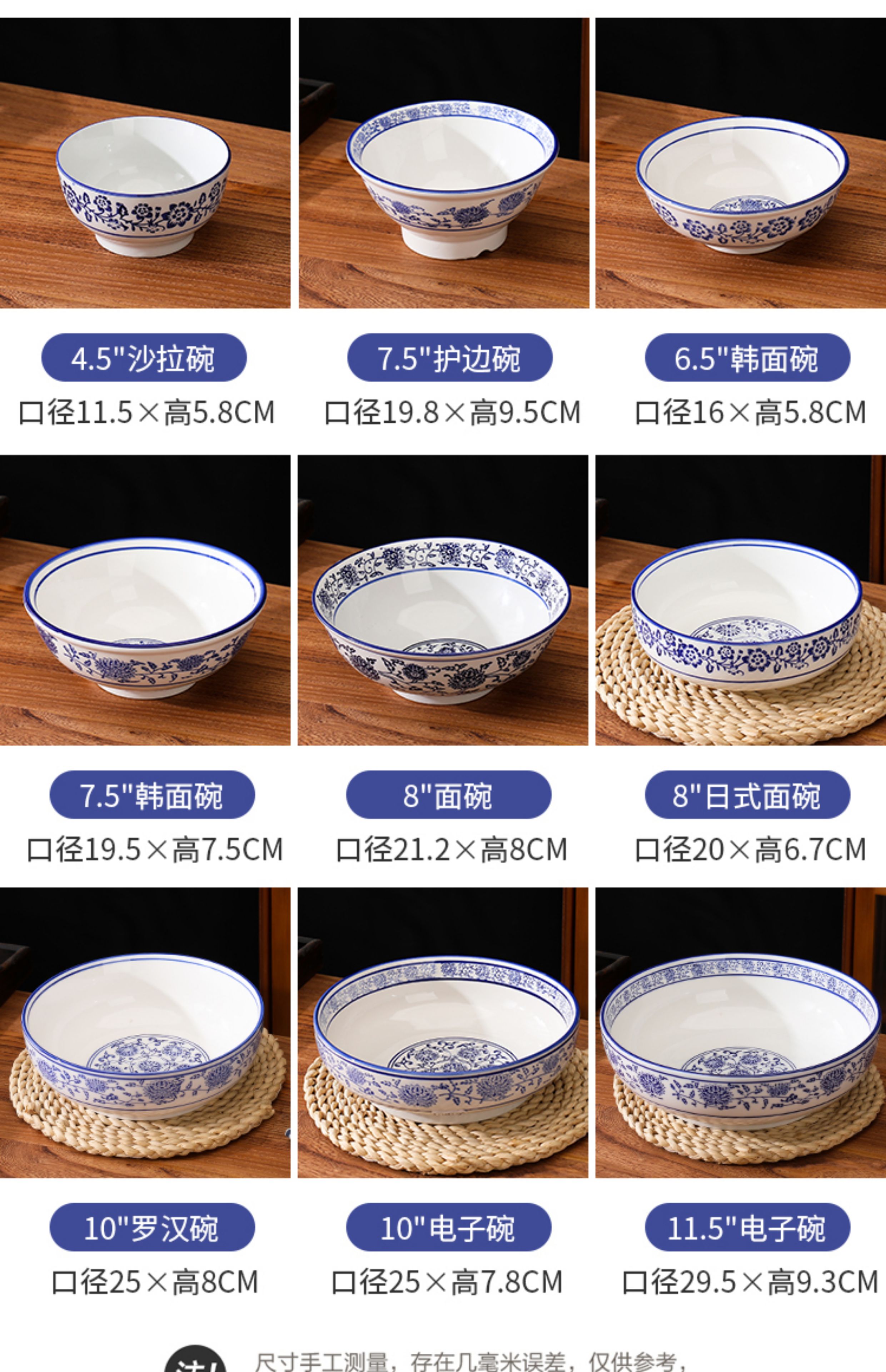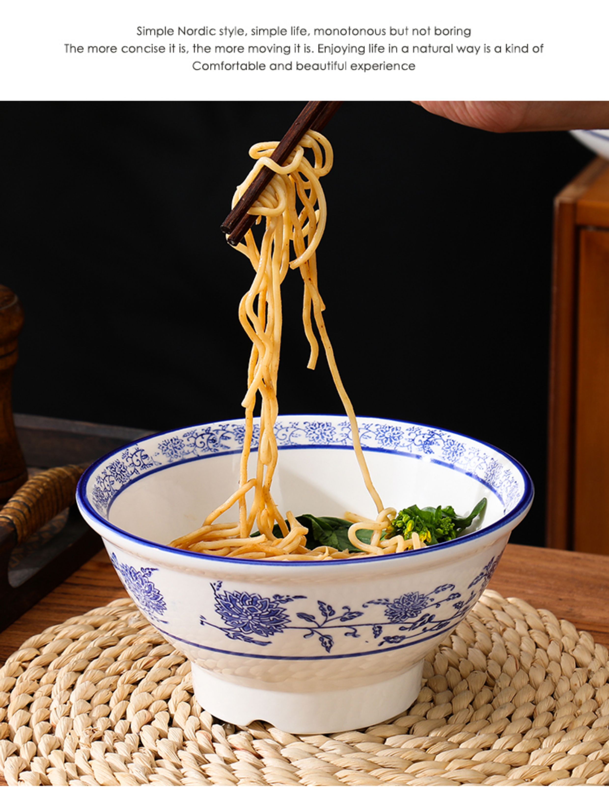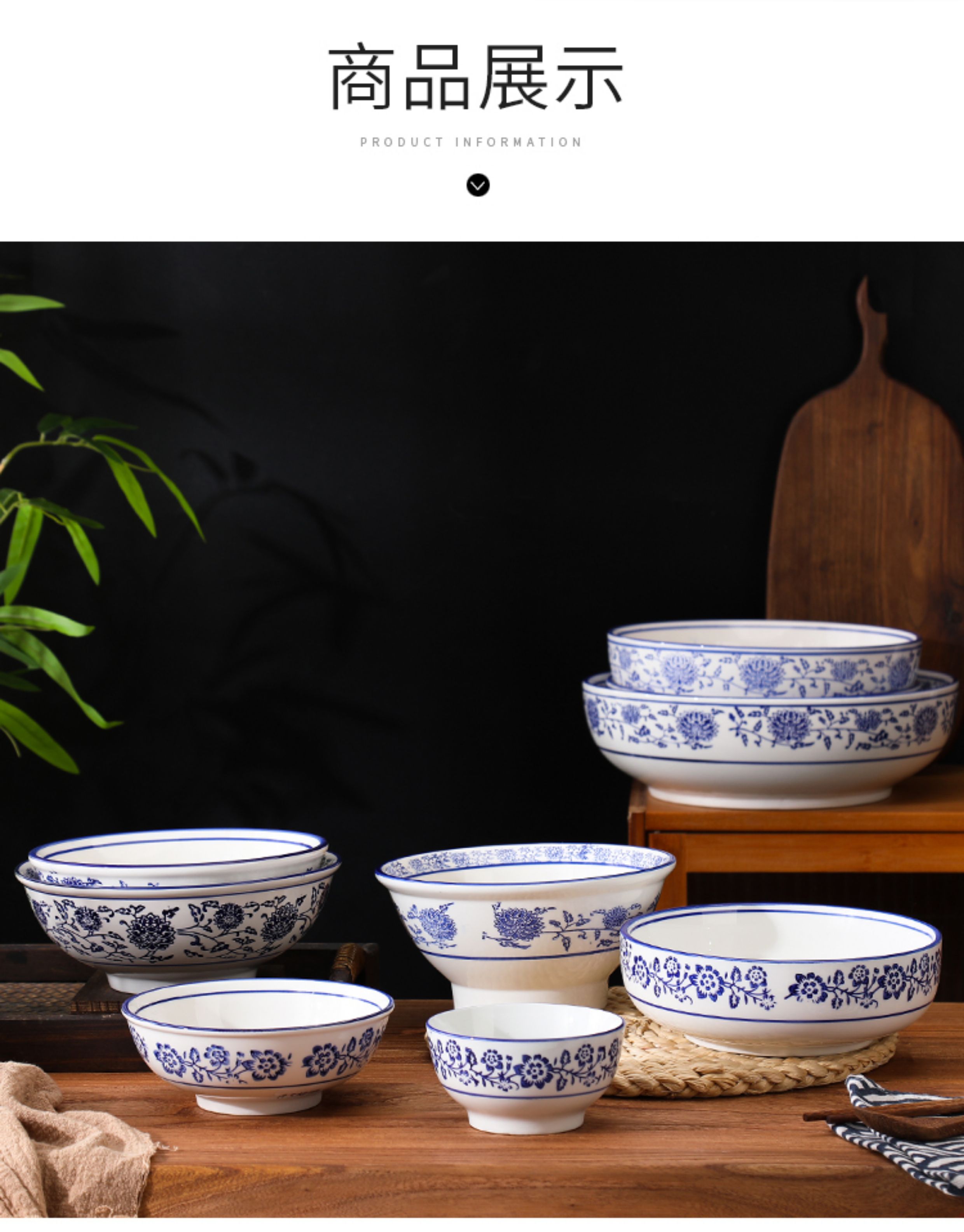 상업용 쇠고기 국수 가정용 말라탕 그릇 파란색과 흰색 도자기 라면 큰 그릇 중국 그릇 수프 그릇 세라믹 식기류 빈티지스토어 가기