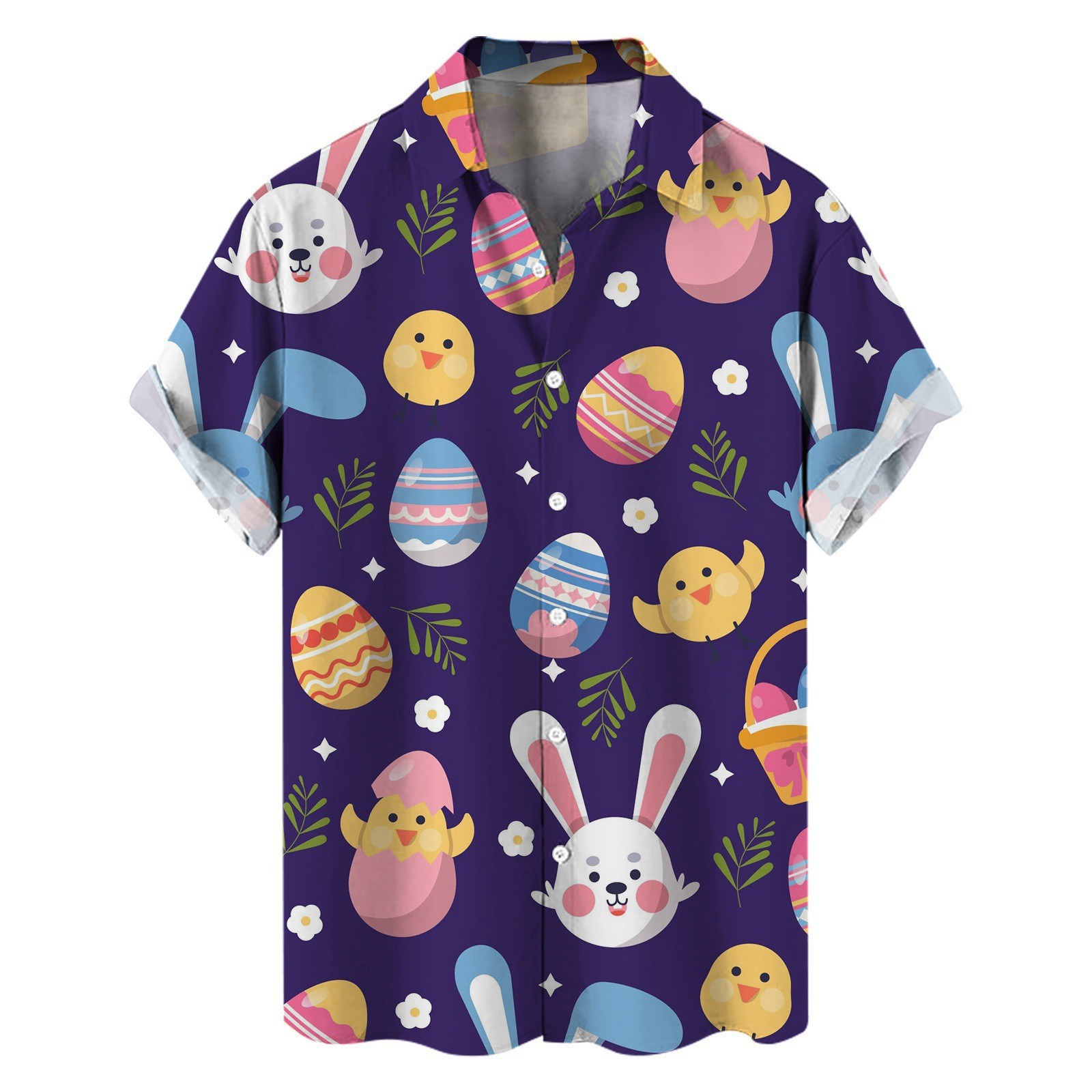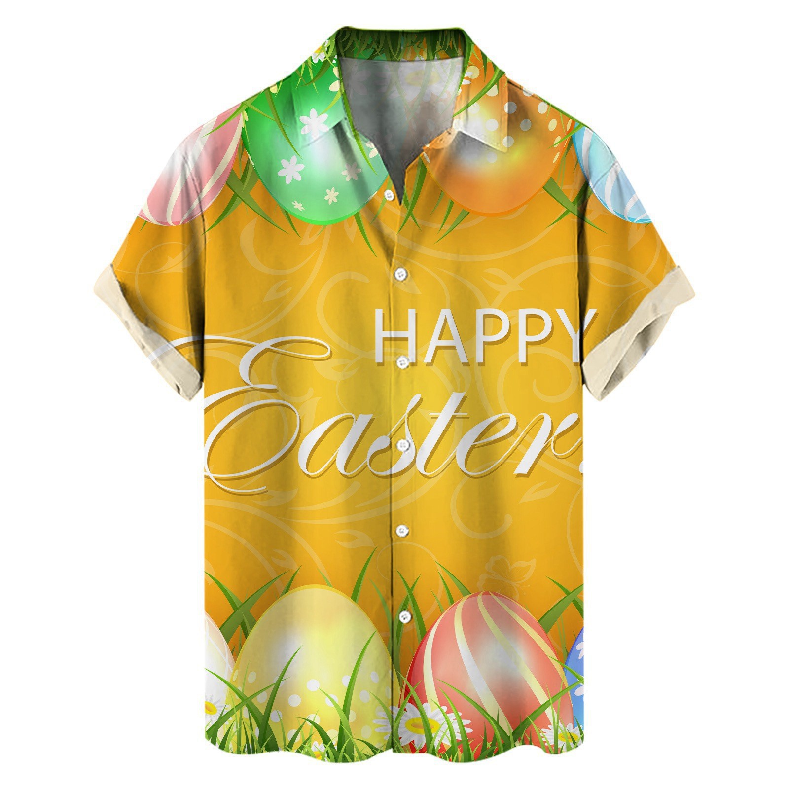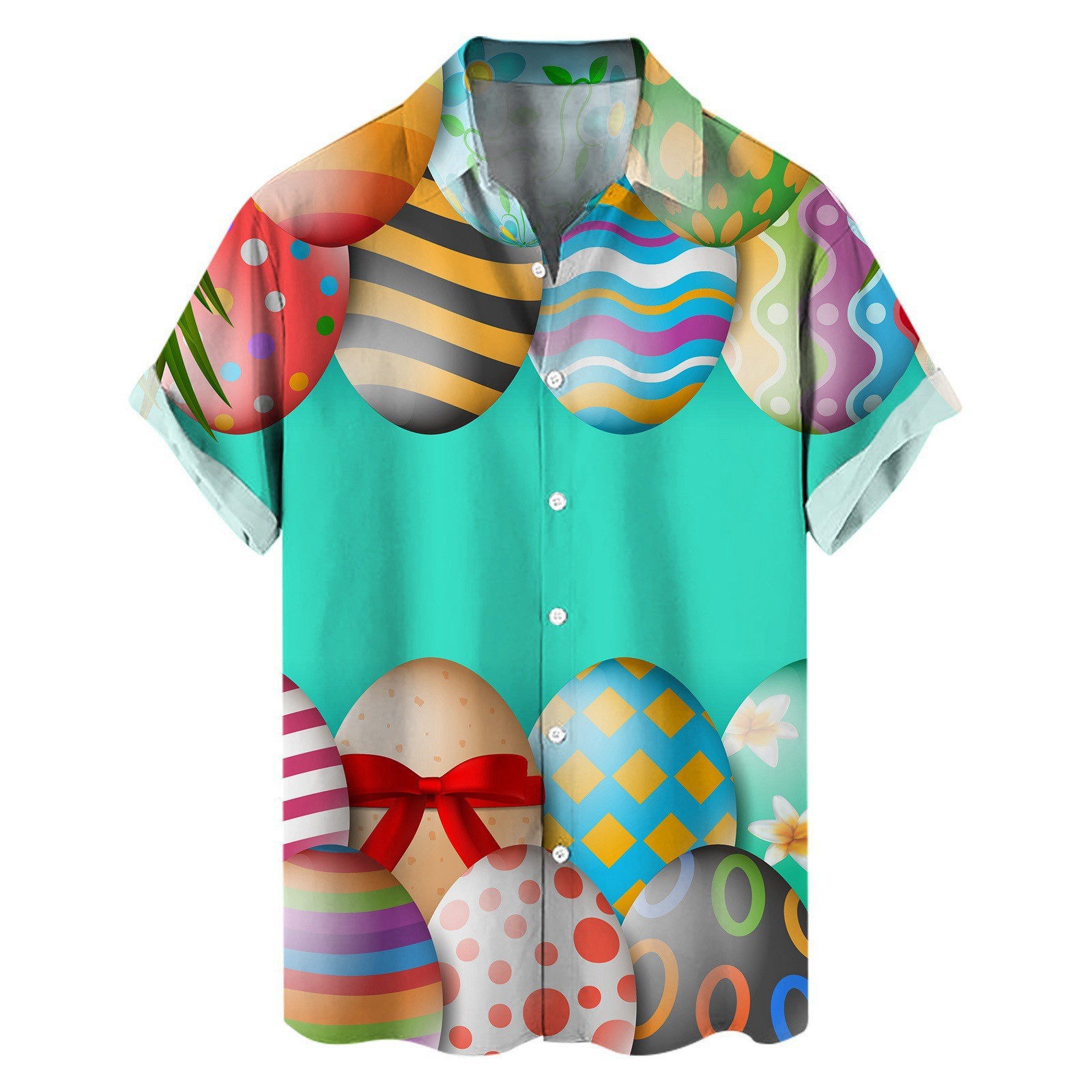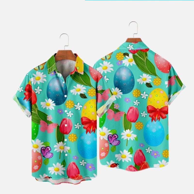 2025 새로운 국경 Duoduo 하와이 부활절 3D 인쇄 반팔 셔츠 캐주얼 여름 남성 셔츠