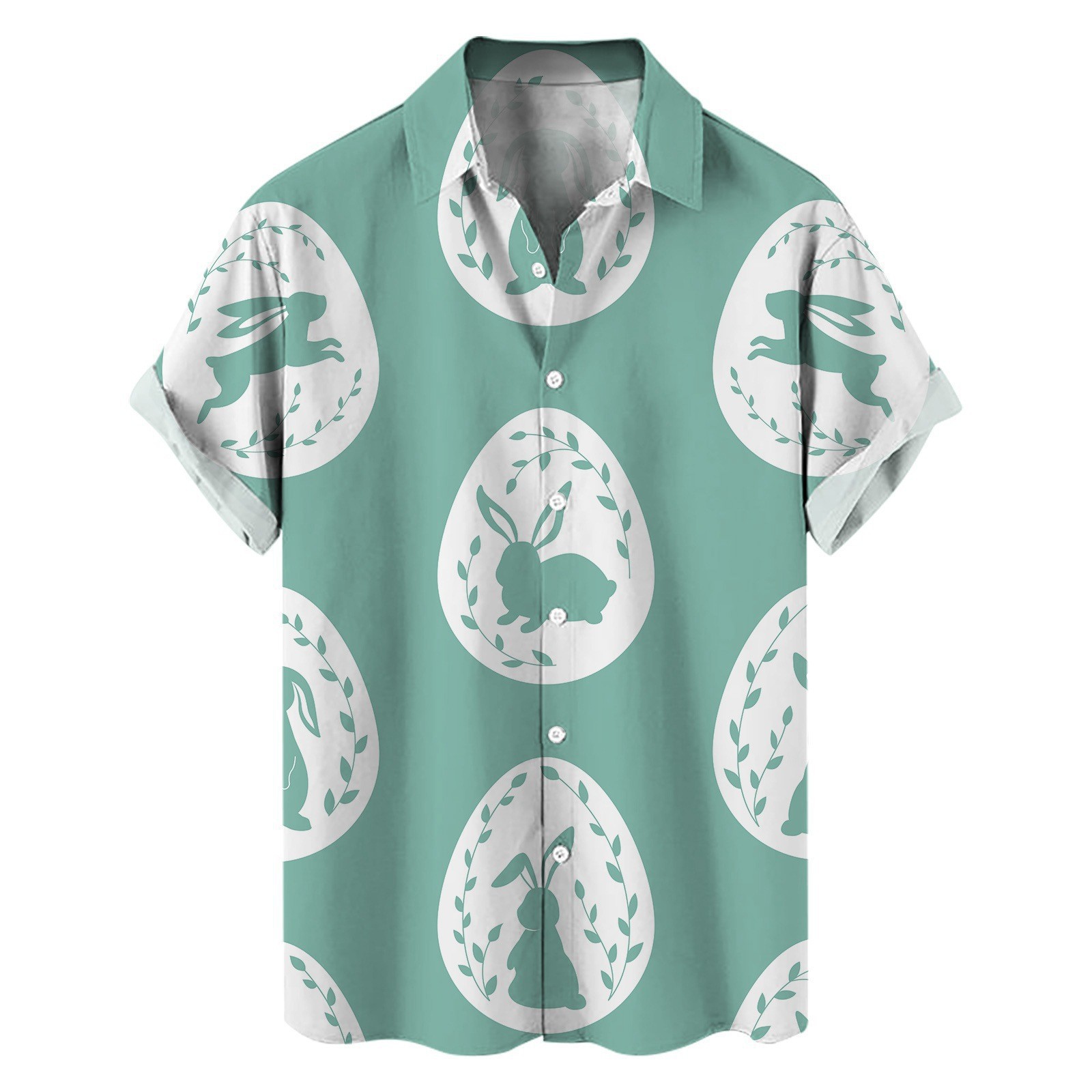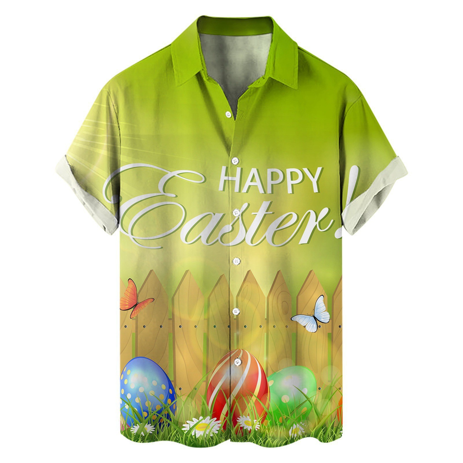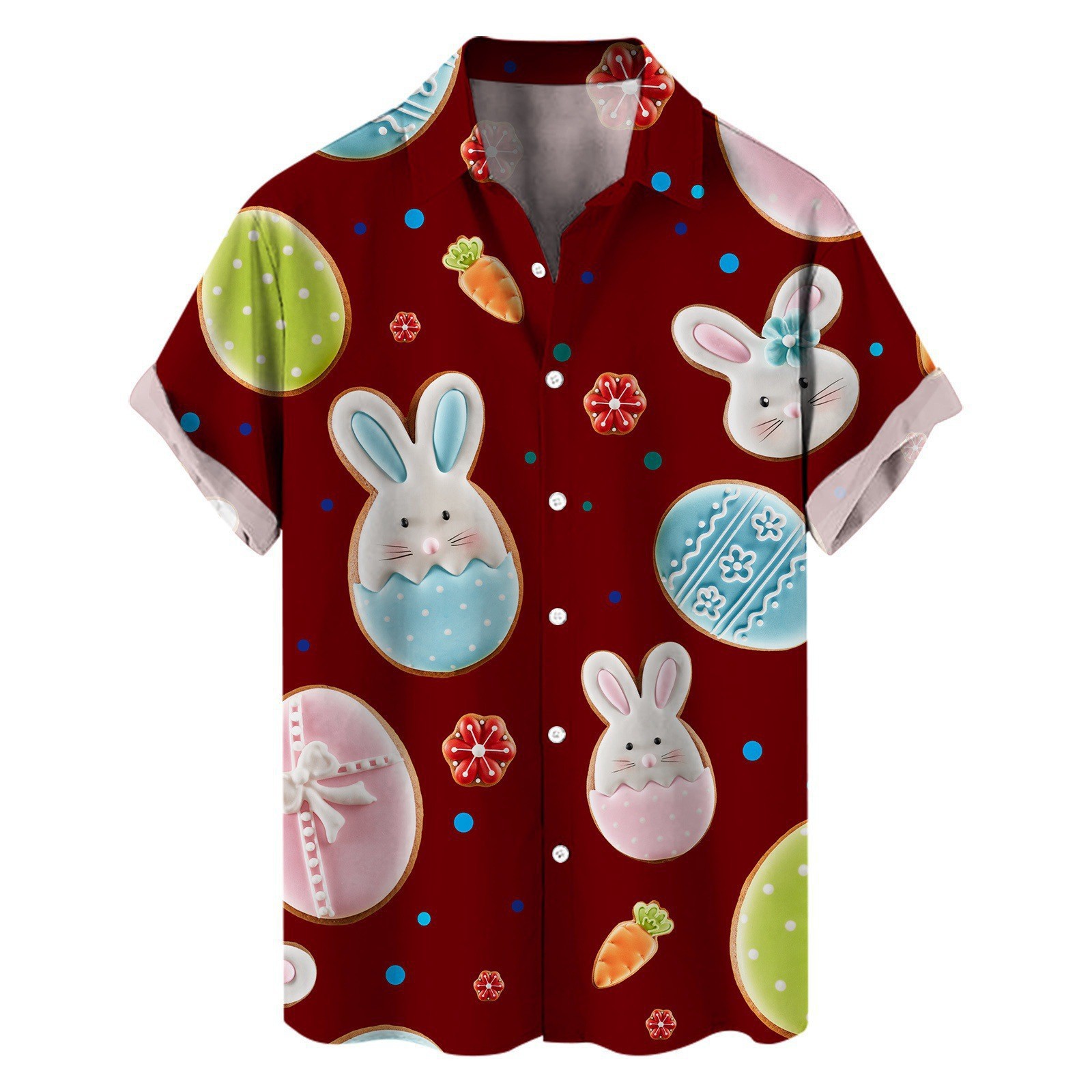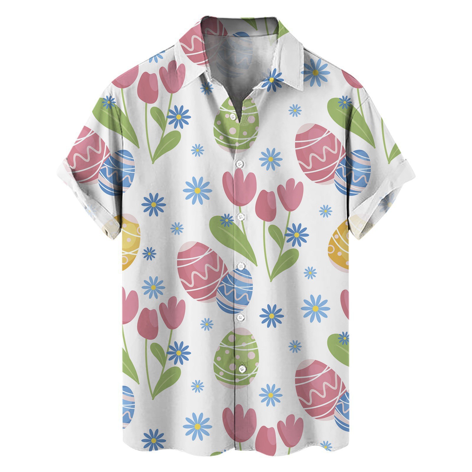 2025 새로운 국경 Duoduo 하와이 부활절 3D 인쇄 반팔 셔츠 캐주얼 여름 남성 셔츠