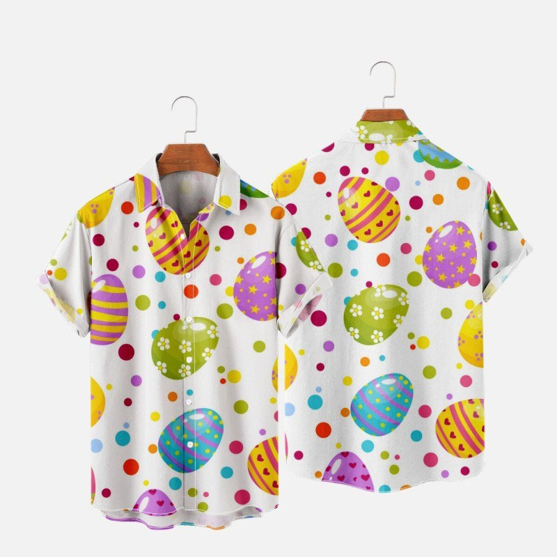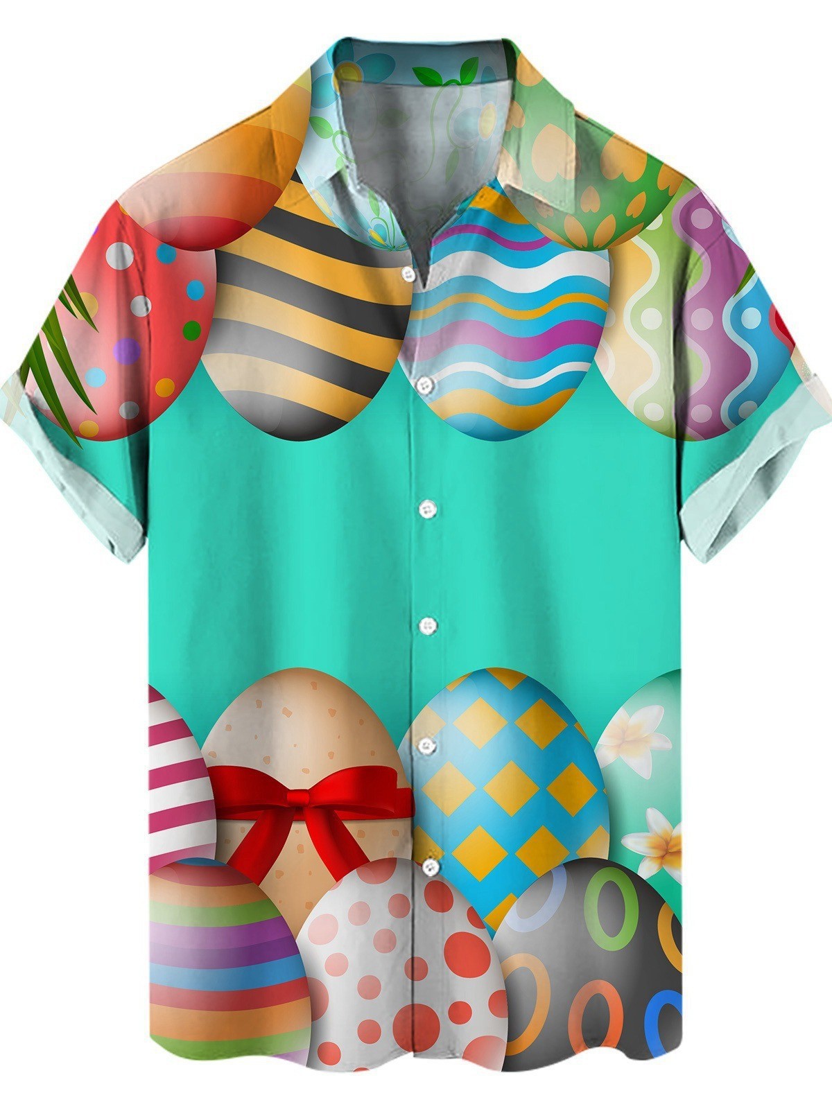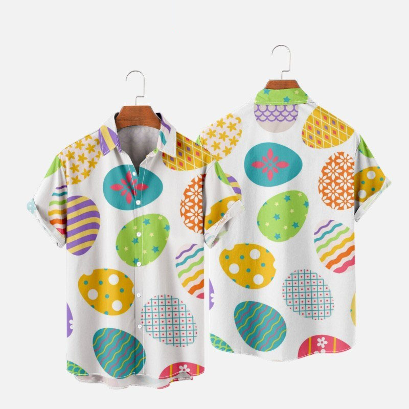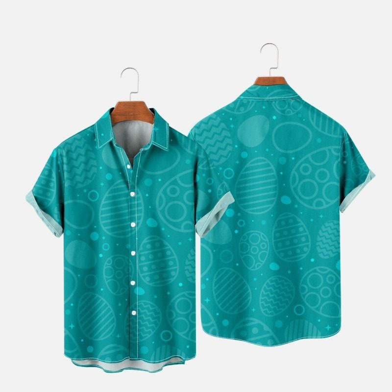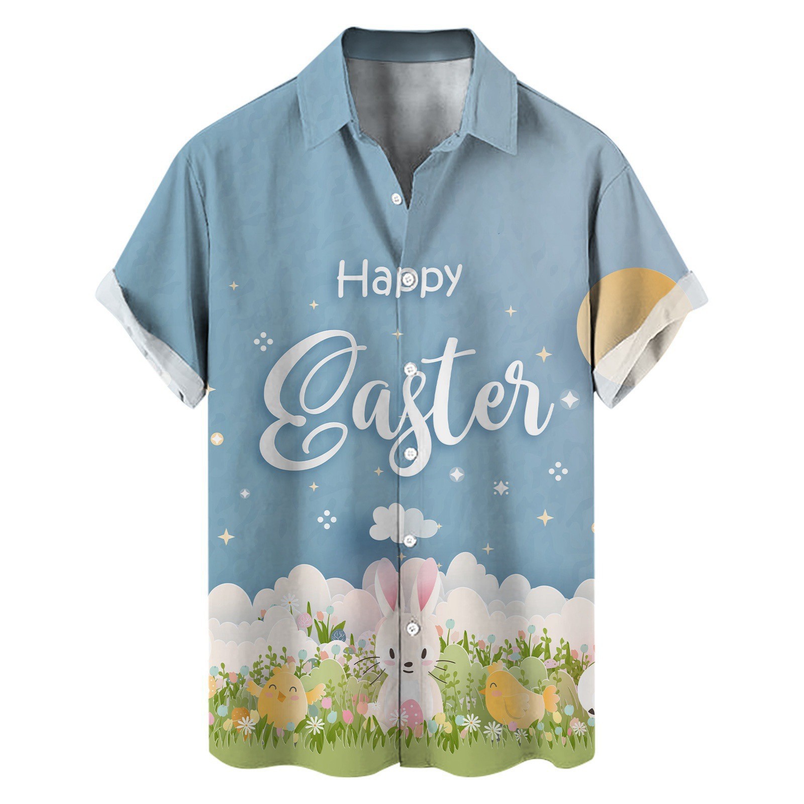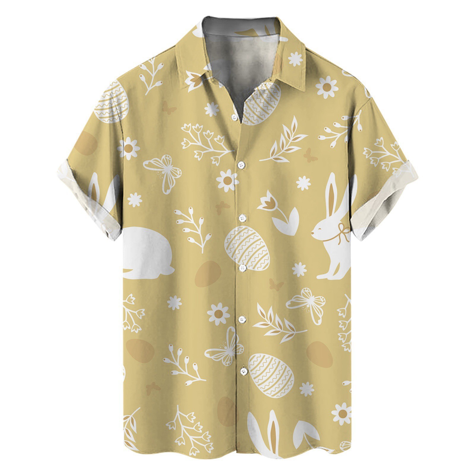 2025 새로운 국경 Duoduo 하와이 부활절 3D 인쇄 반팔 셔츠 캐주얼 여름 남성 셔츠