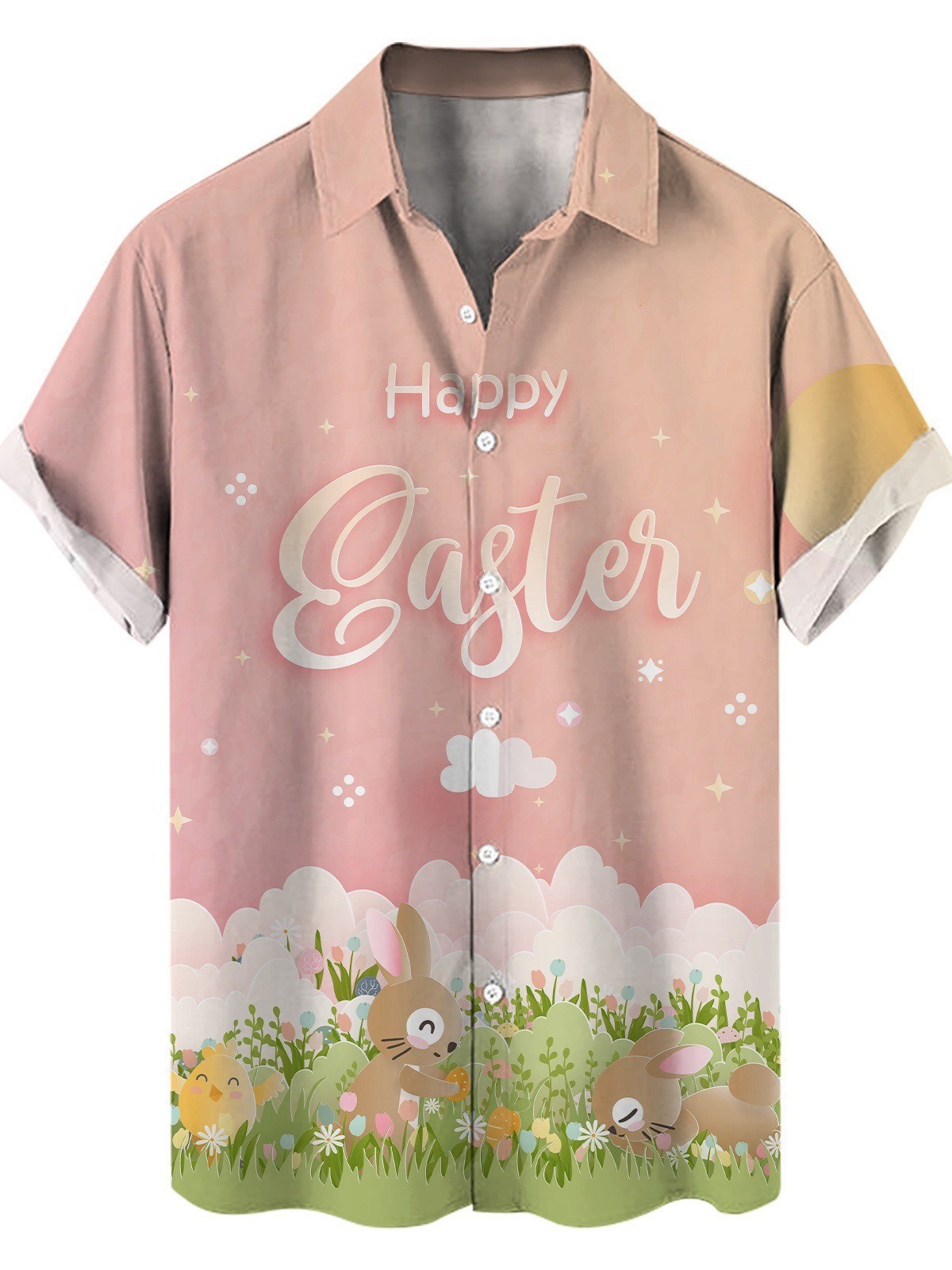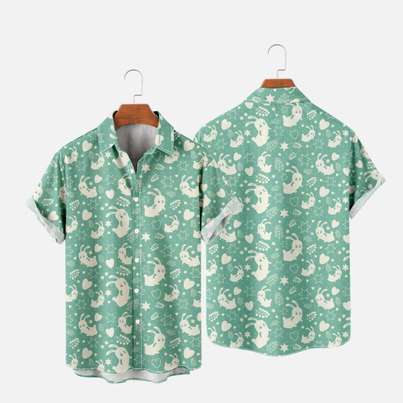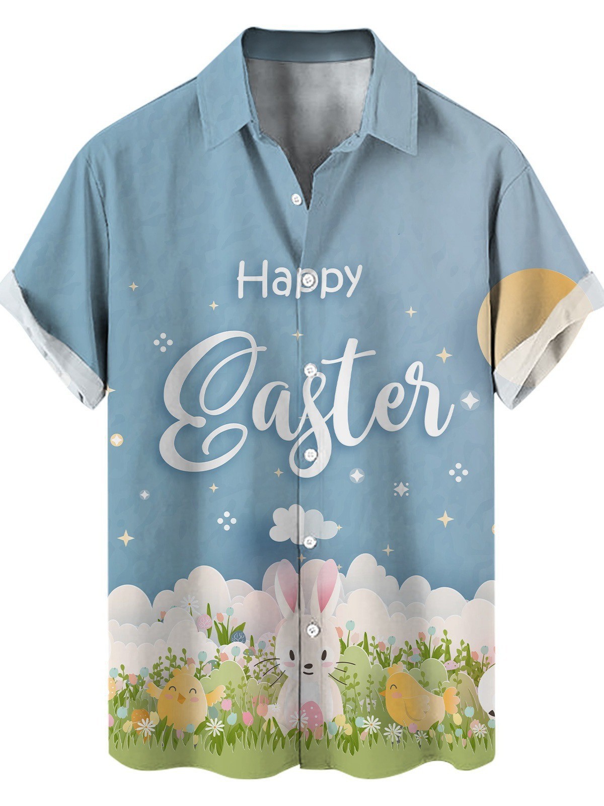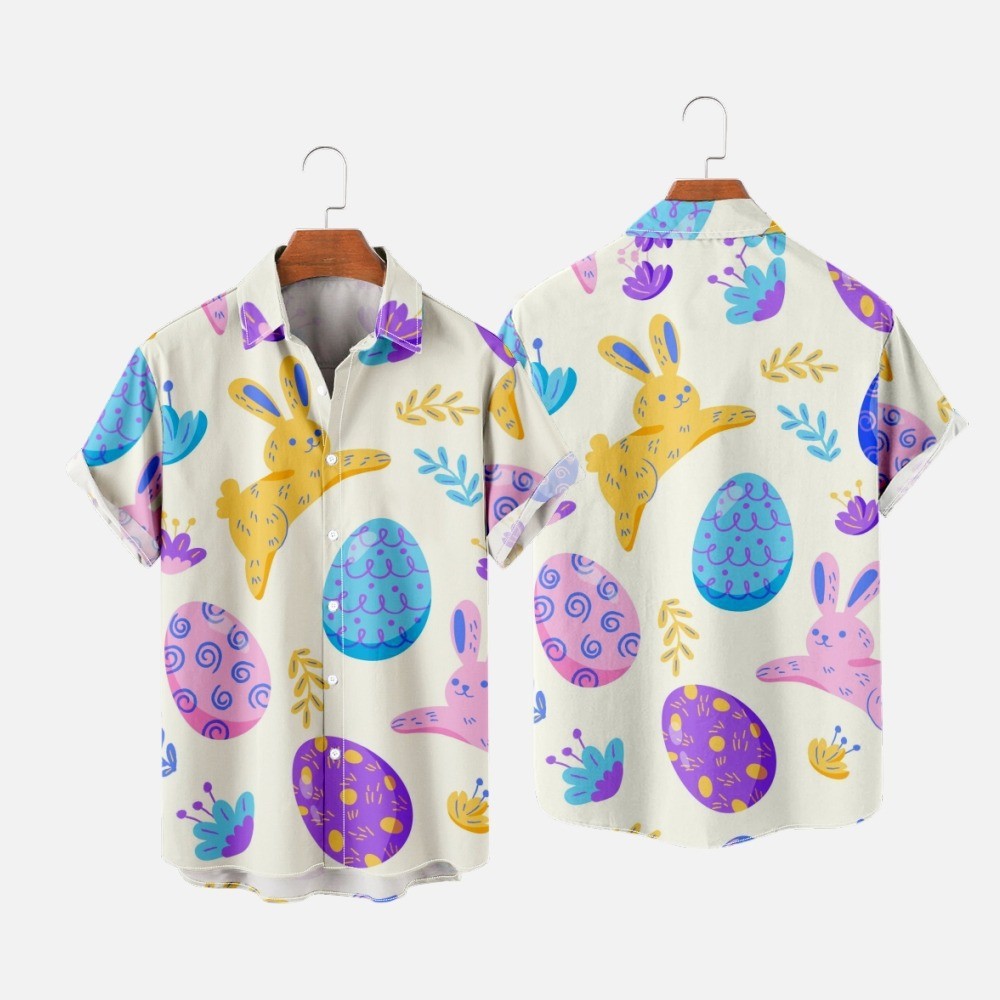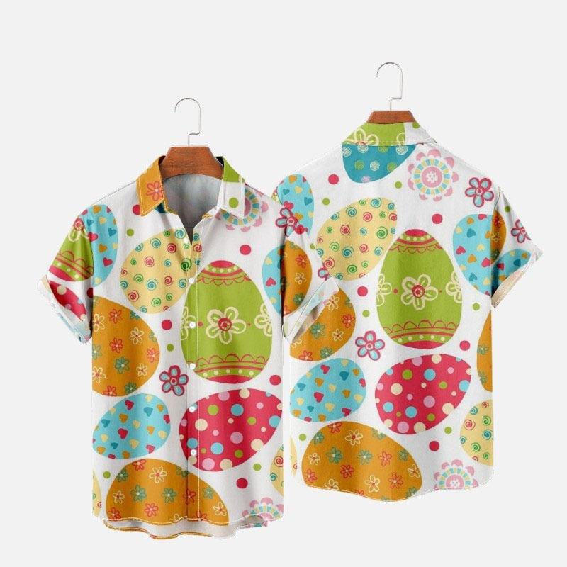 2025 새로운 국경 Duoduo 하와이 부활절 3D 인쇄 반팔 셔츠 캐주얼 여름 남성 셔츠