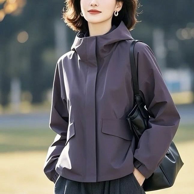 2025 고급 한국 독특한 세련된 슈퍼 잘 생긴 후드 쇼트 코트 여성의 봄과 가을 캐주얼 자켓
