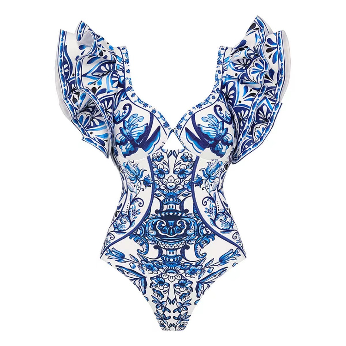 ✅2025 국경을 넘는 새로운 여성 자외선 차단제 수영복 아마존 AliExpress 거즈 스커트 프린트 수영복 여성 비키스토어 가기