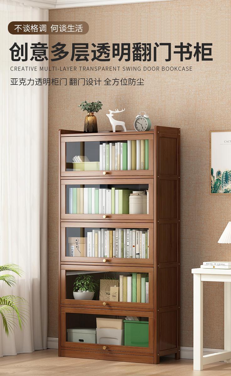 책장 거실 연구 벽 문 방진 비 고체 나무 책 저장 캐비닛 홈 대나무 다층 바닥 책장스토어 가기