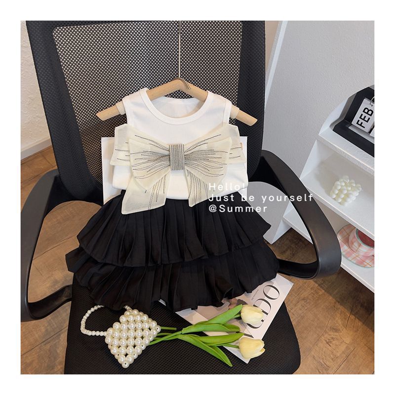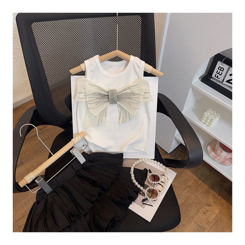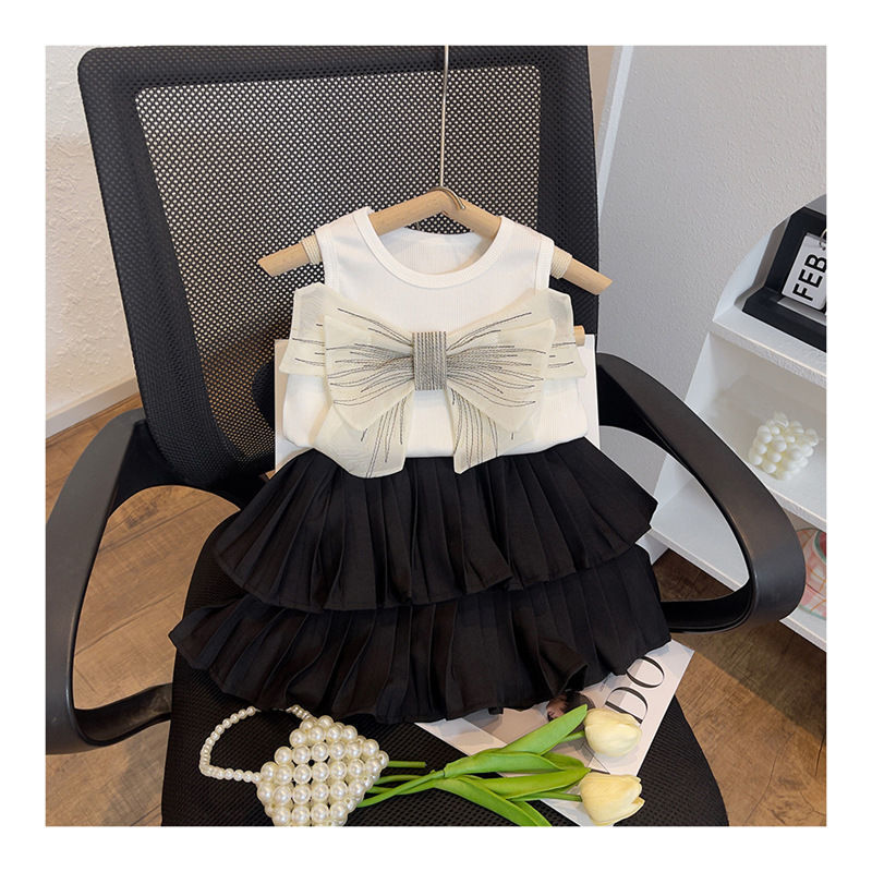 여자 여름 세트 2025 새로운 어린이 패션 조끼 세련된 주름 치마 케이크 스커트 여름 투피스 세트
