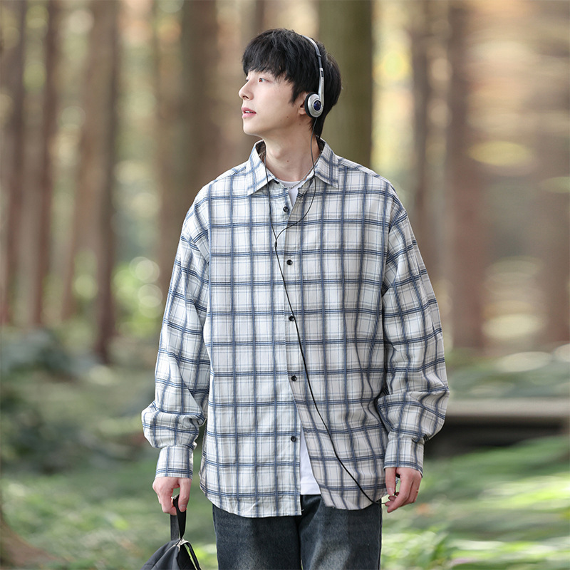 무료 배송 격자 무늬 긴 소매 셔츠 남자의 2025 봄과 가을 새로운 미국 스타일 복고풍 브랜드 느슨한 셔츠 재킷 남성복스토어 가기