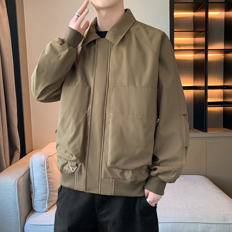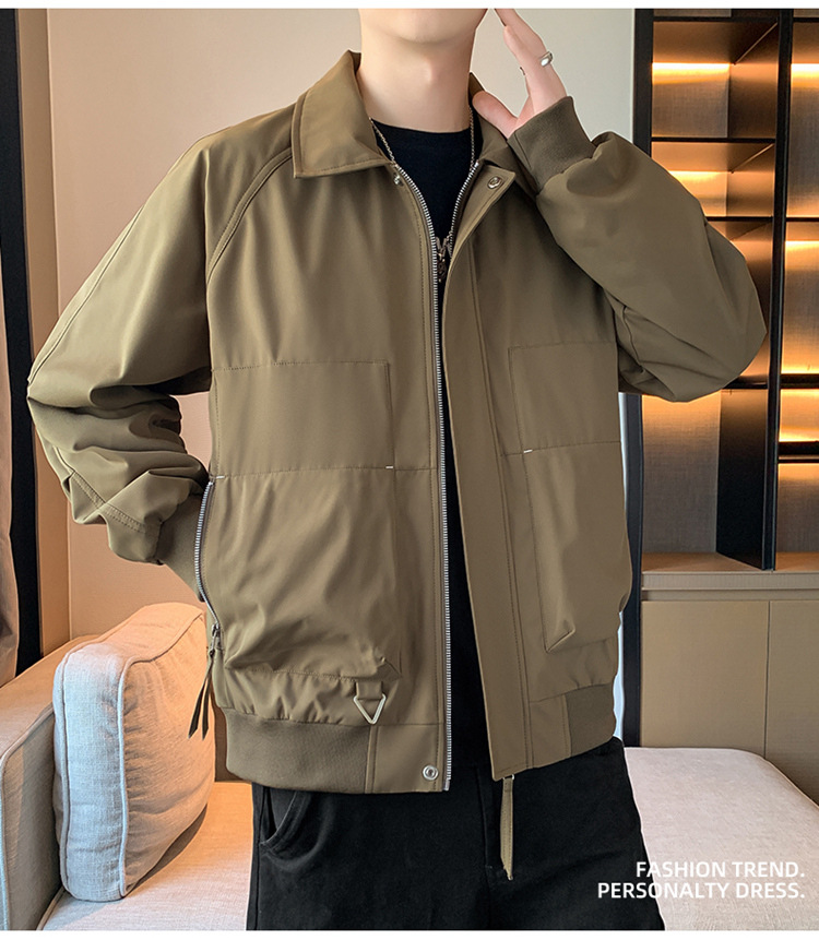 무료 배송 2025 봄 새로운 남성 트렌디 한 캐주얼 스포츠 재킷 느슨한 패션 올 매치 재킷 옷깃 외부스토어 가기