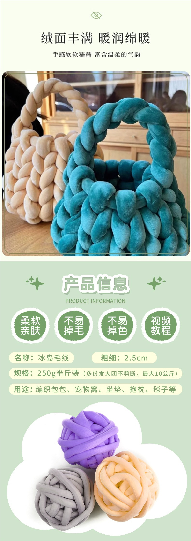 아이슬란드 양모 슈퍼 두꺼운 손으로 짠 가방 소재 DIY 베개 침대 둘레 1 캐티 실 크로 셰 뜨개질 손으로 짠 양모 가방스토어 가기