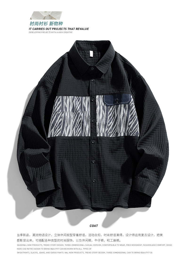 우표 2025 봄과 가을 하이 퀄리티 빵 격자 자카드 셔츠 남성 패션 브랜드 명암 맞춤법 데님 느슨한 긴 소매 셔츠스토어 가기