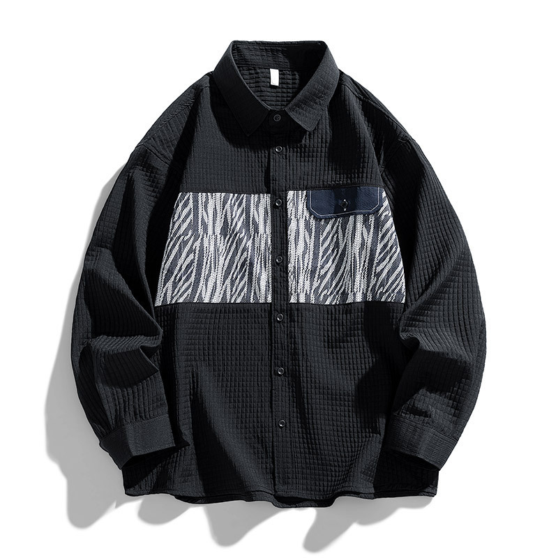 우표 2025 봄과 가을 하이 퀄리티 빵 격자 자카드 셔츠 남성 패션 브랜드 명암 맞춤법 데님 느슨한 긴 소매 셔츠