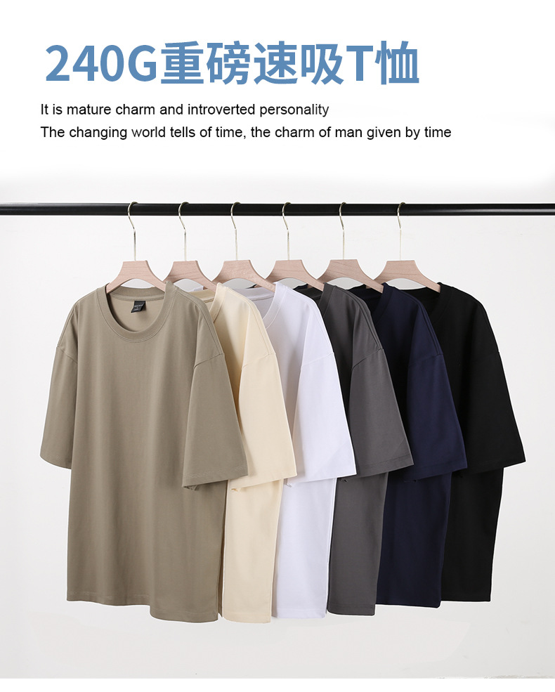우편 블록버스터 240g 홍콩 스타일 하이 퀄리티 티셔츠 넓은 어깨 소매 느슨한 캐주얼 짧은 소매 남성 및 여성 바지 셔츠 티셔츠스토어 가기